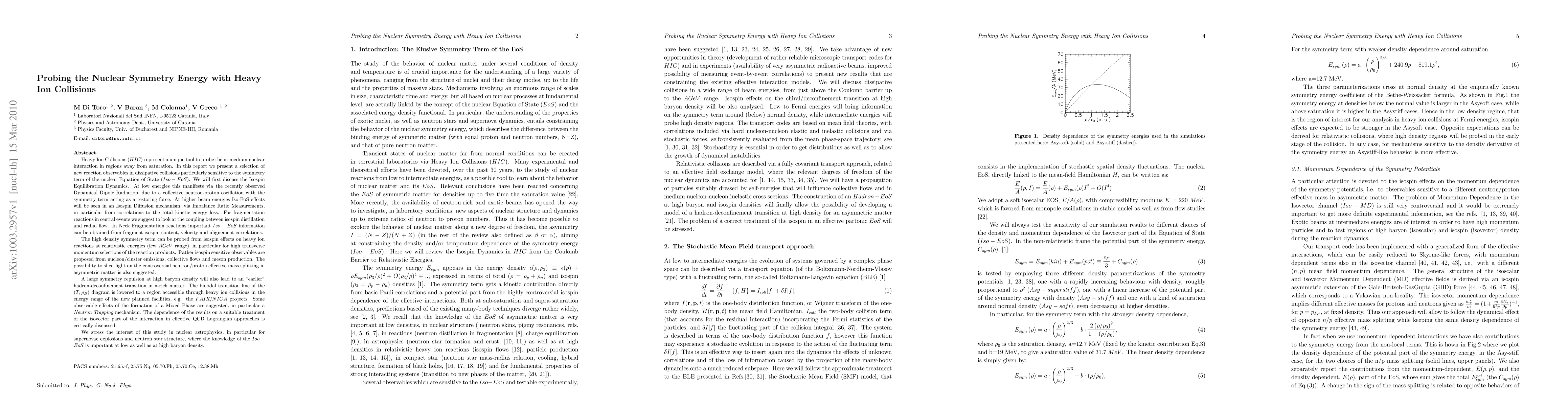 This paper explores the use of heavy ion collisions to investigate the nuclear symmetry energy, focusing on new reaction observables sensitive to the symmetry term of the nuclear Equation of State. It proposes methods to probe the high-density symmetry term and discusses the implications for nuclear astrophysics, including supernovae and neutron star structure.