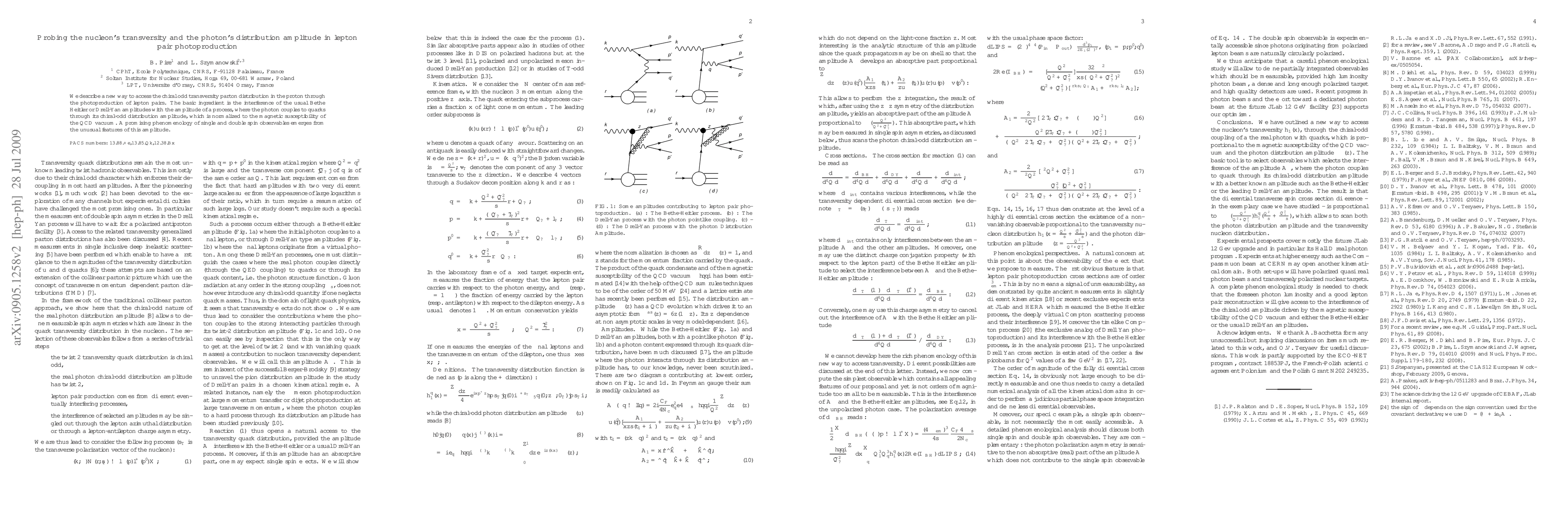We describe a new way to access the chiral odd transversity parton distribution in the proton through the photoproduction of lepton pairs. The basic ingredient is the interference of the usual Bethe Heitler or Drell-Yan amplitudes with the amplitude of a process, where the photon couples to quarks through its chiral-odd distribution amplitude, which is normalized to the magnetic susceptibility of the QCD vacuum. A promising phenomenology of single and double spin observables emerges from the unusual features of this amplitude.