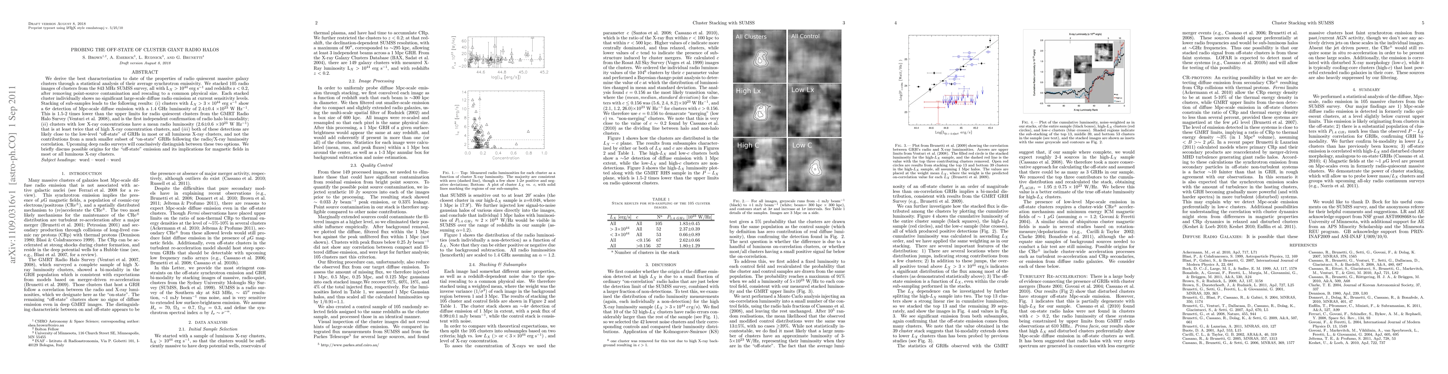 We derive the best characterization to date of the properties of radio quiescent massive galaxy clusters through a statistical analysis of their average synchrotron emissivity. We stacked 105 radio images of clusters from the 843 MHz SUMSS survey, all with X-ray luminosities greater than 1.0E+44 erg/s and redshifts z < 0.2, after removing point-source contamination and rescaling to a common physical size. Each stacked cluster individually shows no significant large-scale diffuse radio emission at current sensitivity levels. Stacking of sub-samples leads to the following results: (i) clusters with L_{X} > 3.0E+44 erg/s show a 6-sigma detection of Mpc-scale diffuse emission with a 1.4 GHz luminosity of 2.4\pm0.4 x 1.0E+23 W/Hz. This is 1.5-2 times lower than the upper limits for radio quiescent clusters from the GMRT Radio Halo Survey (Venturi et al. 2008), and is the first independent confirmation of radio halo bi-modality; (ii) clusters with low X-ray concentrations have a mean radio luminosity (2.6\pm0.6 x 1.0E+23 W/Hz) that is at least twice that of high X-ray concentration clusters, and (iii) both of these detections are likely close to the low-level "off-state" of GRHs in most or all luminous X-ray clusters, and not due to contributions from a much smaller subset of "on-state" GRHs following the radio/X-ray luminosity correlation. Upcoming deep radio surveys will conclusively distinguish between these two options. We briefly discuss possible origins for the "off-state" emission and its implications for magnetic fields in most or all luminous X-ray clusters.