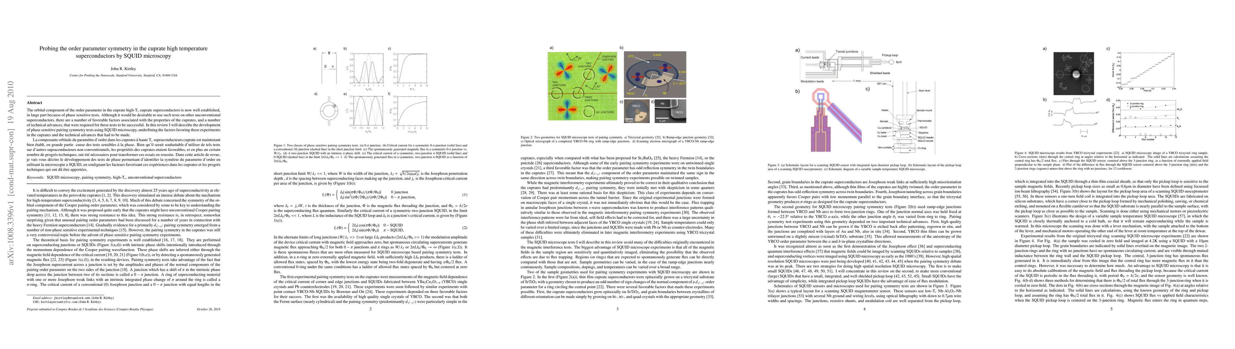 This paper reviews the development of SQUID microscopy techniques to probe the orbital component of the order parameter in cuprate high-temperature superconductors, highlighting the unique properties of cuprates and technical advancements that enabled these phase-sensitive tests.