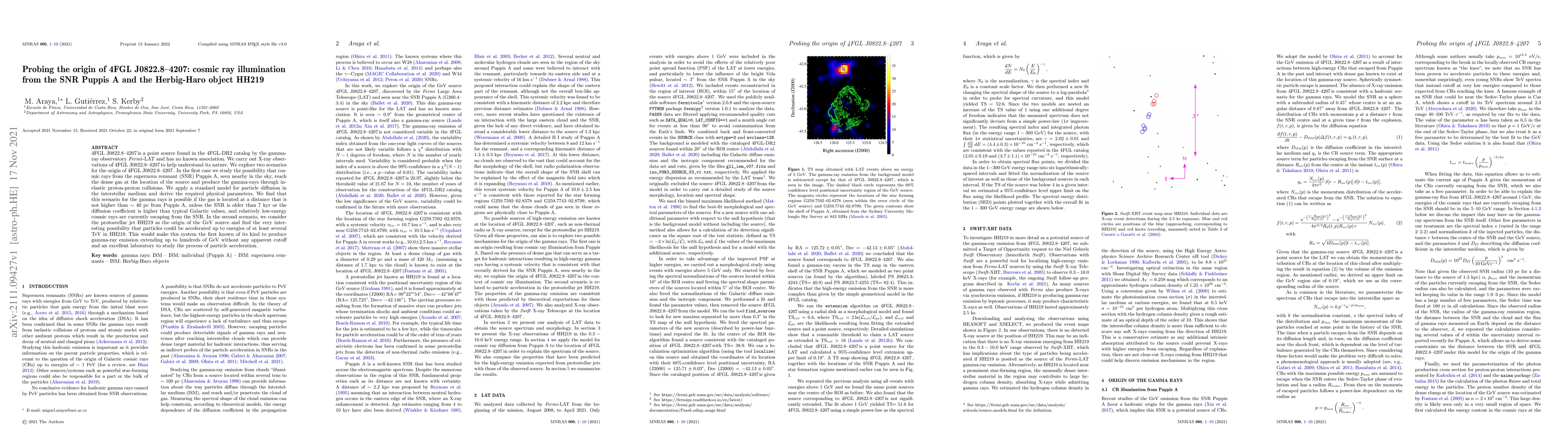 A study investigates two scenarios for the origin of gamma-ray source 4FGL J0822.8-4207: one involving cosmic rays from nearby supernova remnant Puppis A and another suggesting a protostellar jet HH219 is accelerating particles to high energies.