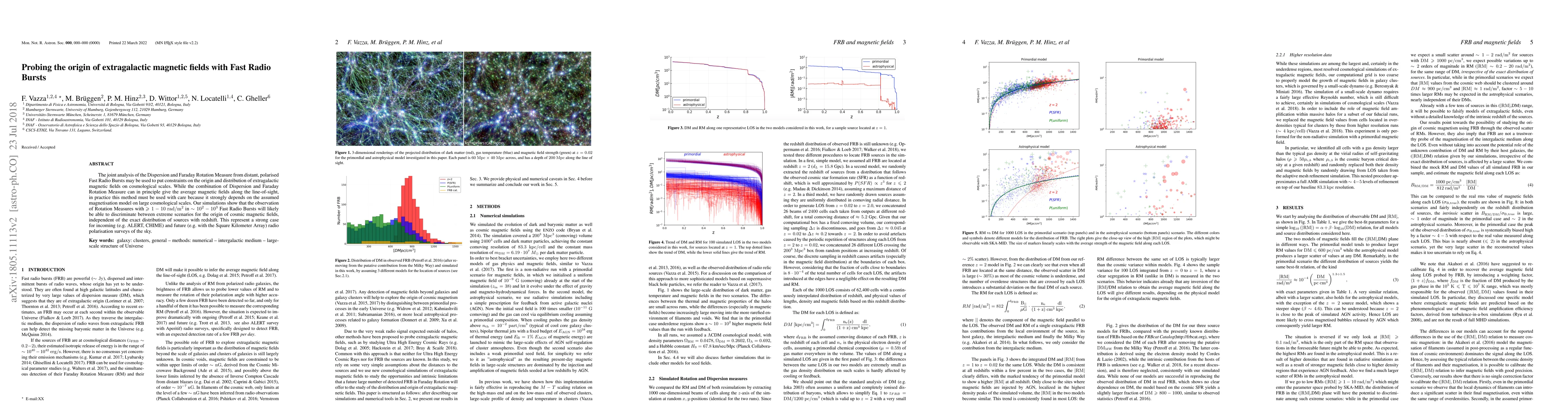 This paper investigates the potential of Fast Radio Bursts (FRBs) to constrain the origin and distribution of extragalactic magnetic fields through the analysis of Dispersion and Faraday Rotation Measure. The study suggests that observing Rotation Measures in at least 100 FRBs can help distinguish between different models of cosmic magnetic fields, highlighting the importance of upcoming radio polarization surveys.