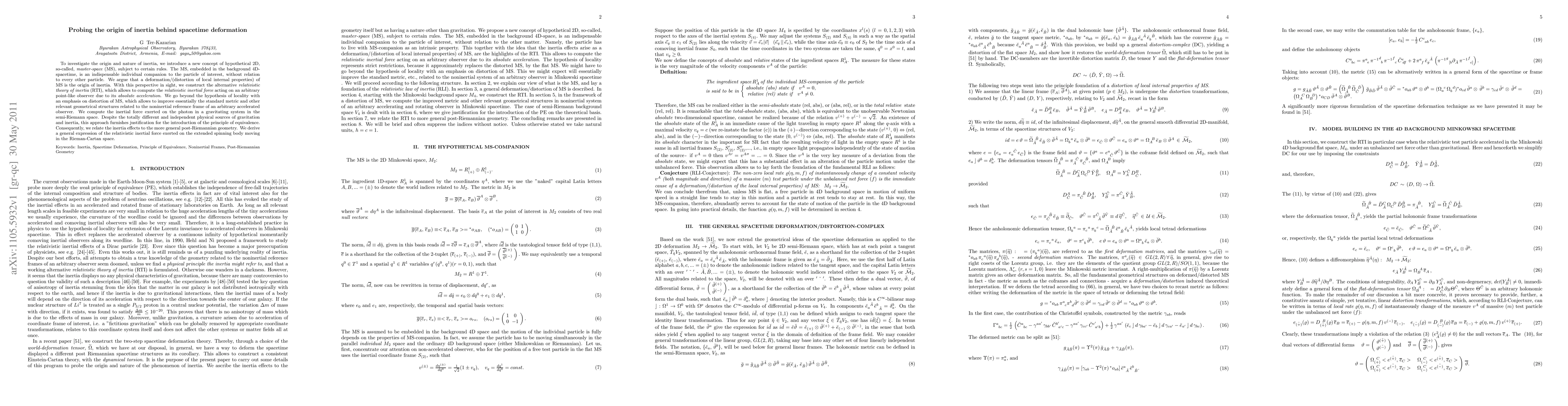 This paper proposes a new concept of "master-space" (MS) to explain the origin of inertia as a deformation of MS embedded in 4D-spacetime, leading to the development of an alternative relativistic theory of inertia (RTI). The RTI computes inertial forces and improves geometrical structures in noninertial frames, justifying the principle of equivalence and linking inertia to post-Riemannian geometry.