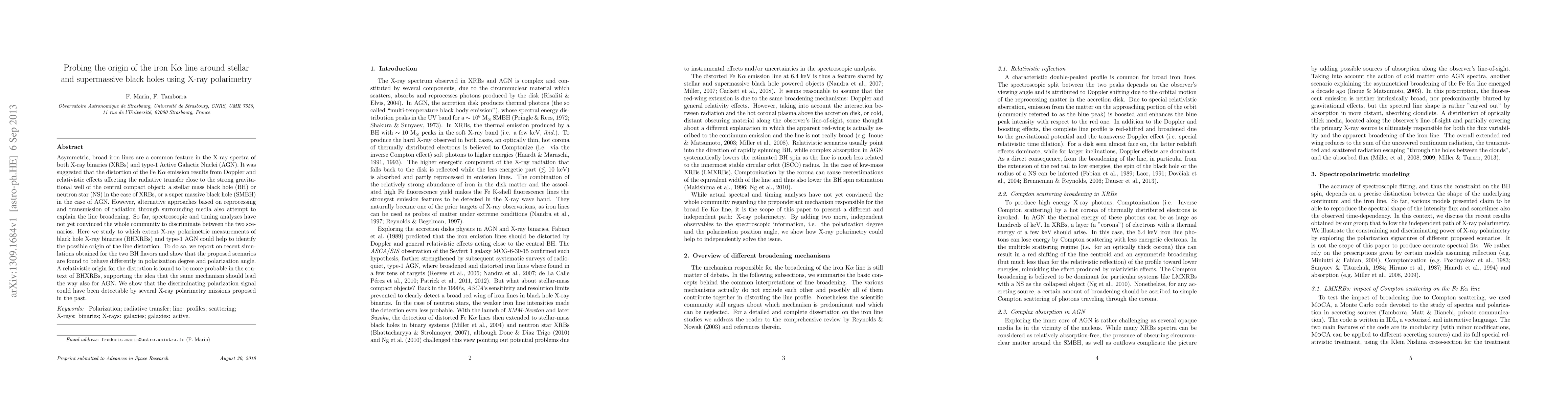 Asymmetric, broad iron lines are a common feature in the X-ray spectra of both X-ray binaries (XRBs) and type-1 Active Galactic Nuclei (AGN). It was suggested that the distortion of the Fe K_alpha emission results from Doppler and relativistic effects affecting the radiative transfer close to the strong gravitational well of the central compact object: a stellar mass black hole (BH) or neutron star (NS) in the case of XRBs, or a super massive black hole (SMBH) in the case of AGN. However, alternative approaches based on reprocessing and transmission of radiation through surrounding media also attempt to explain the line broadening. So far, spectroscopic and timing analyzes have not yet convinced the whole community to discriminate between the two scenarios. Here we study to which extent X-ray polarimetric measurements of black hole X-ray binaries (BHXRBs) and type-1 AGN could help to identify the possible origin of the line distortion. To do so, we report on recent simulations obtained for the two BH flavors and show that the proposed scenarios are found to behave differently in polarization degree and polarization angle. A relativistic origin for the distortion is found to be more probable in the context of BHXRBs, supporting the idea that the same mechanism should lead the way also for AGN. We show that the discriminating polarization signal could have been detectable by several X-ray polarimetry missions proposed in the past.