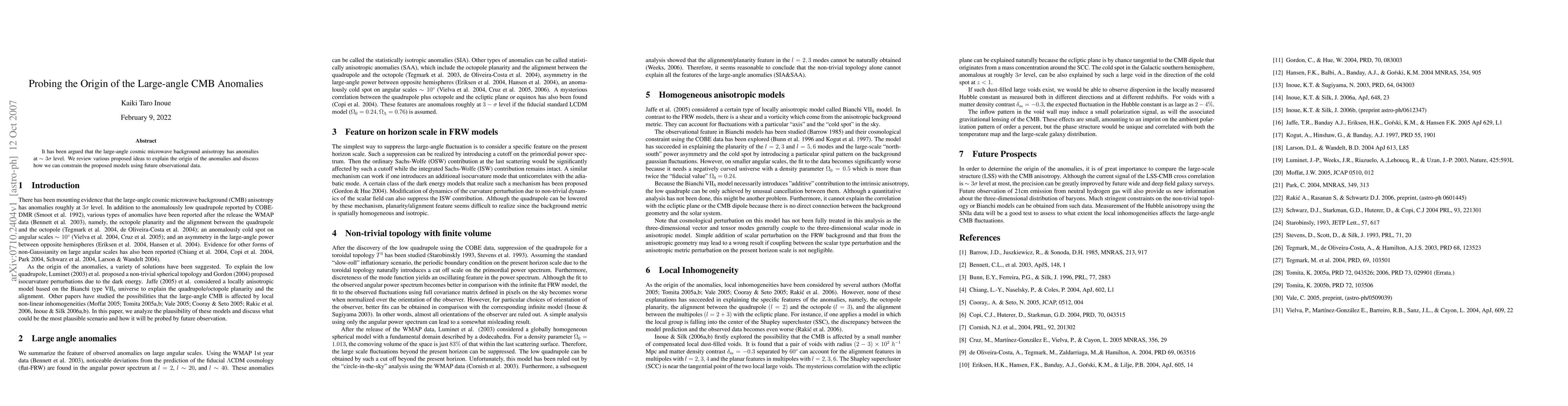 It has been argued that the large-angle cosmic microwave background anisotropy has anomalies at 3-sigma level. We review various proposed ideas to explain the origin of the anomalies and discuss how we can constrain the proposed models using future observational data.