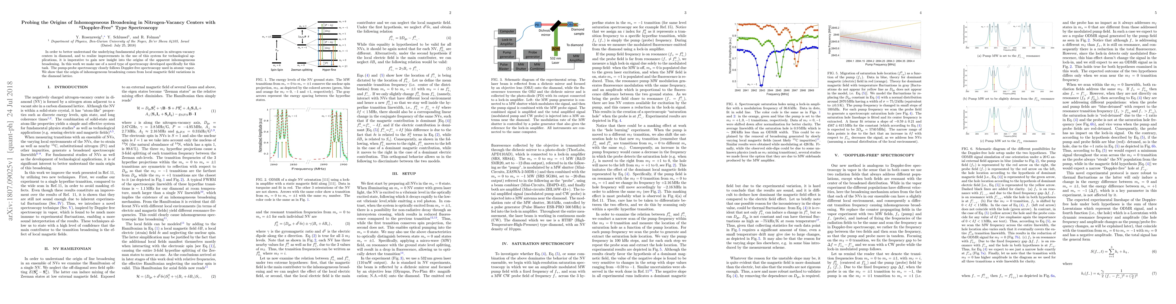In order to better understand the underlying fundamental physical processes in nitrogen-vacancy centers in diamond, and to realize improvements in the use of this system for technological applications, it is imperative to gain new insight into the origins of the apparent inhomogeneous broadening. In this work we make use of a novel type of spectroscopy developed specifically for this task. The pump-probe spectroscopy closely follows Doppler-free spectroscopy used in atomic vapor. We show that the origin of inhomogeneous broadening comes from local magnetic field variations in the diamond lattice.