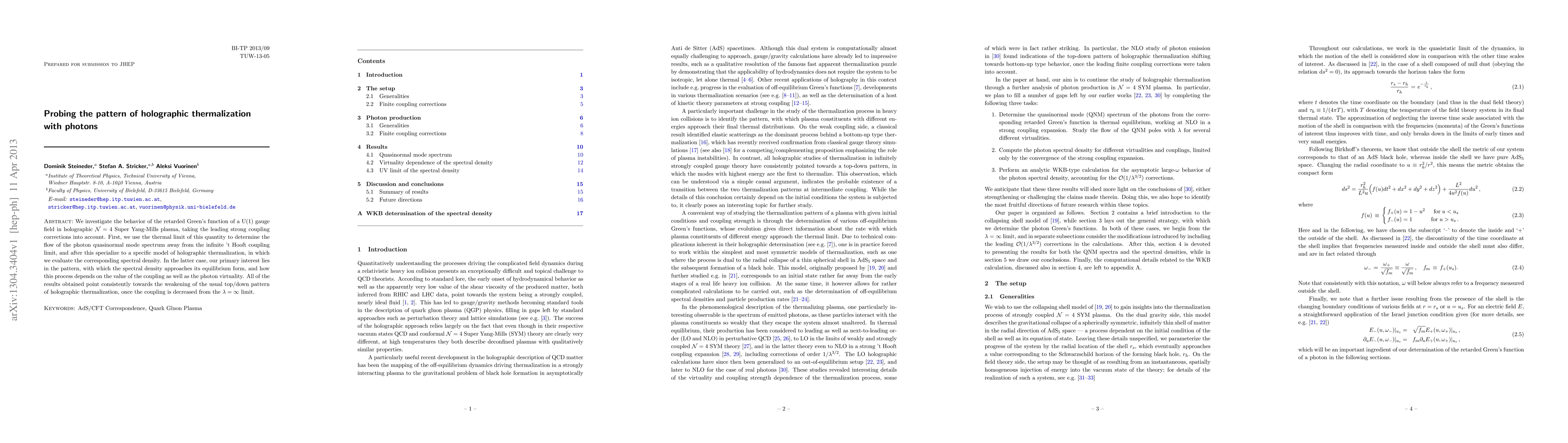The work extends previous studies by including leading strong coupling corrections and analyzing their impact on the photon quasinormal mode spectrum and the spectral density's approach to equilibrium, revealing a weakening of the top-down thermalization pattern as the coupling decreases.