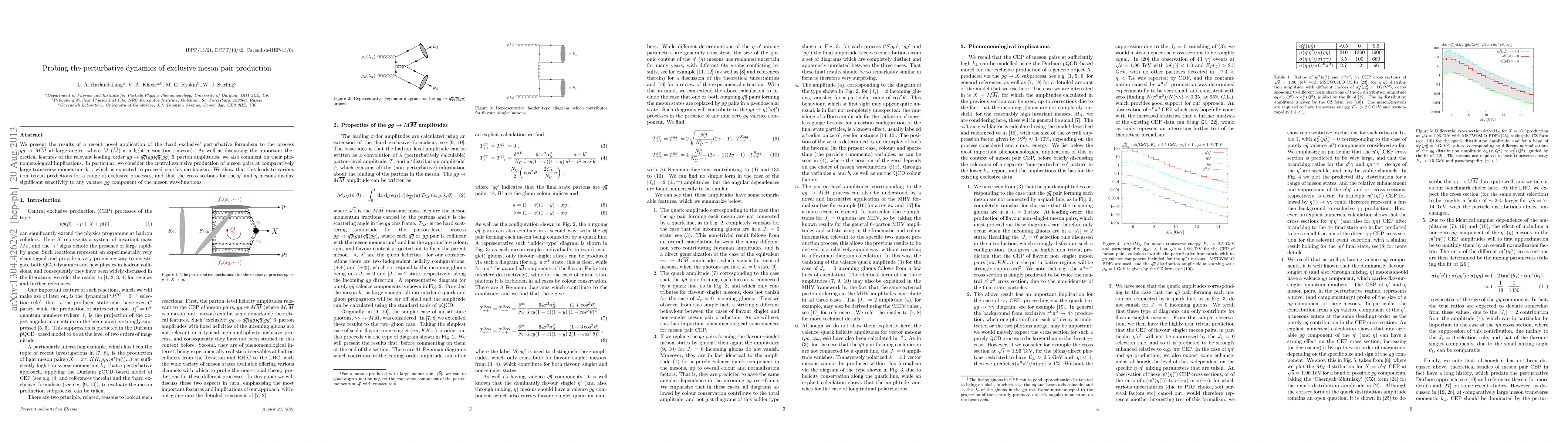 This paper applies a new perturbative formalism to study the production of meson pairs from gluon interactions at large angles, revealing significant theoretical insights and non-trivial predictions for exclusive processes, with notable sensitivity in cross sections for eta and eta' mesons.