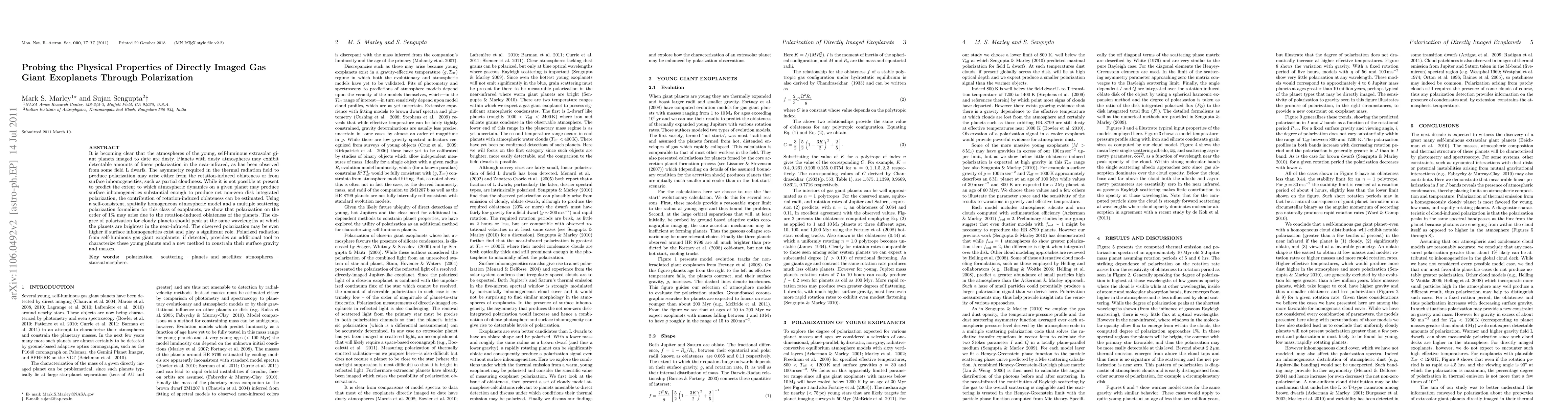 This paper investigates the potential for detecting linear polarization in the atmospheres of directly imaged gas giant exoplanets, suggesting that dusty atmospheres may exhibit detectable polarization in the near-infrared due to rotation-induced oblateness or surface inhomogeneities. The study estimates that polarization on the order of 1% may arise from rotation-induced oblateness.