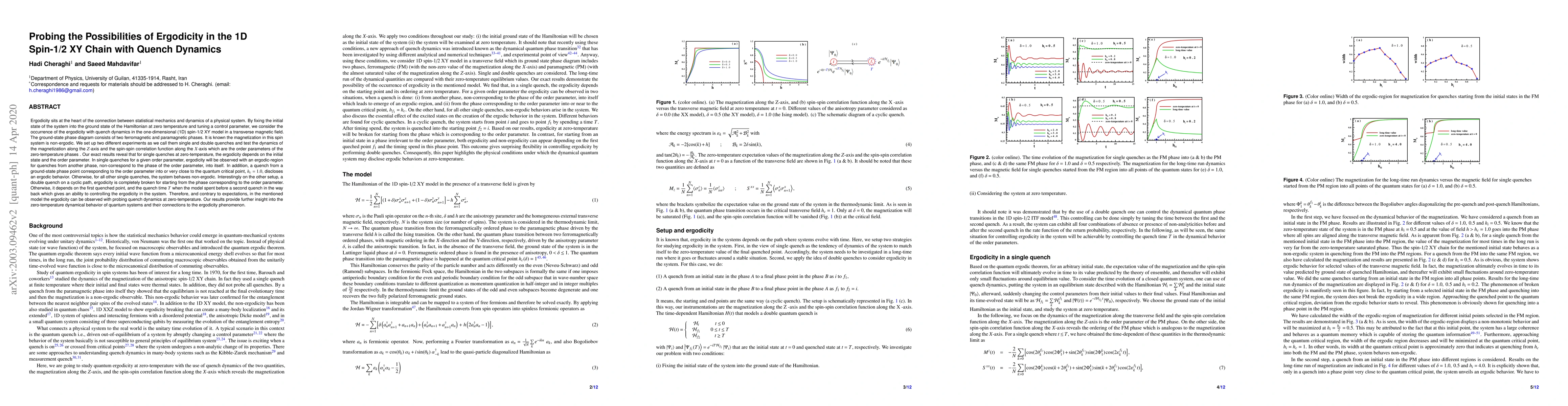 Researchers studied the 1D XY chain in a transverse magnetic field using quench dynamics to investigate ergodicity at zero temperature; they found that ergodicity depends on initial state, order parameter, and quench time.