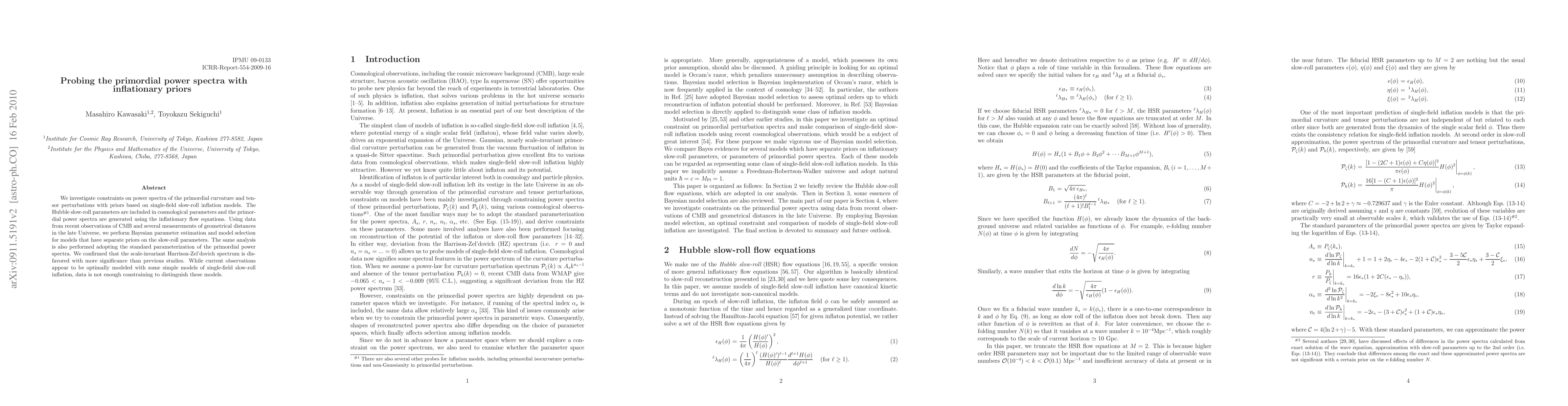 This paper examines constraints on primordial power spectra using inflationary priors from single-field slow-roll models, employing Bayesian analysis on CMB and geometrical distance data. It finds that the scale-invariant spectrum is increasingly disfavored, but current data cannot distinguish between simple inflationary models.