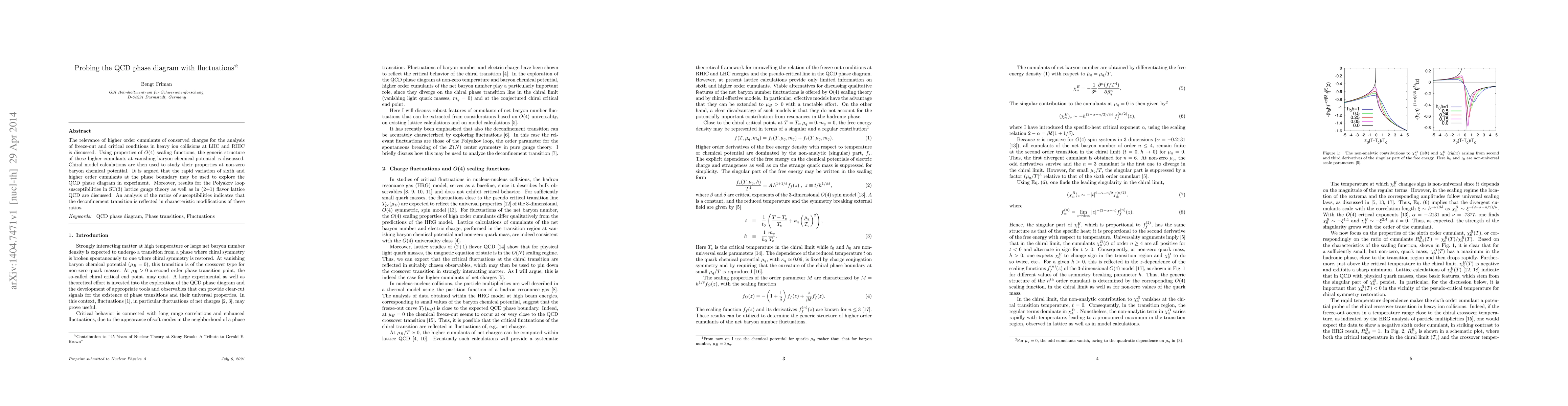 The relevance of higher order cumulants of conserved charges for the analysis of freeze-out and critical conditions in heavy ion collisions at LHC and RHIC is discussed. Using properties of $O(4)$ scaling functions, the generic structure of these higher cumulants at vanishing baryon chemical potential is discussed. Chiral model calculations are then used to study their properties at non-zero baryon chemical potential. It is argued that the rapid variation of sixth and higher order cumulants at the phase boundary may be used to explore the QCD phase diagram in experiment. Moreover, results for the Polyakov loop susceptibilities in SU(3) lattice gauge theory as well as in (2+1) flavor lattice QCD are discussed. An analysis of the ratios of susceptibilities indicates that the deconfinement transition is reflected in characteristic modifications of these ratios.