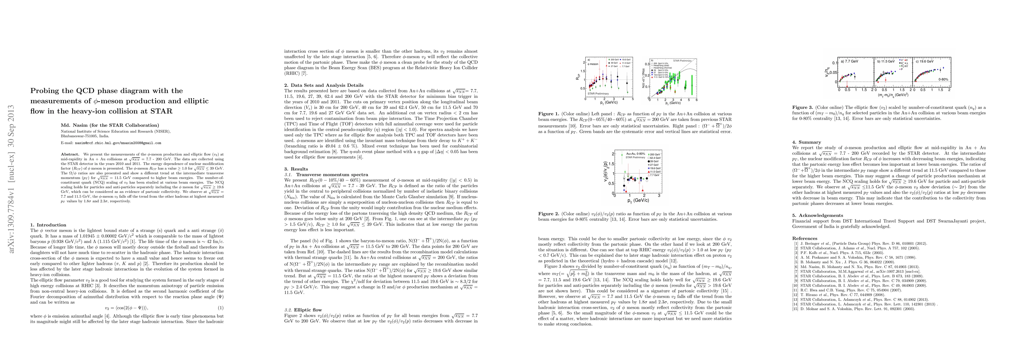 This paper reports on $\phi$-meson production and elliptic flow measurements in Au + Au collisions at STAR, revealing a nuclear modification factor ($R_{\rm{CP}}$) of $\phi$ mesons ≥1.0 at lower energies, and evidence of partonic collectivity at higher energies, with $\phi$ mesons deviating from NCQ scaling at lower energies.