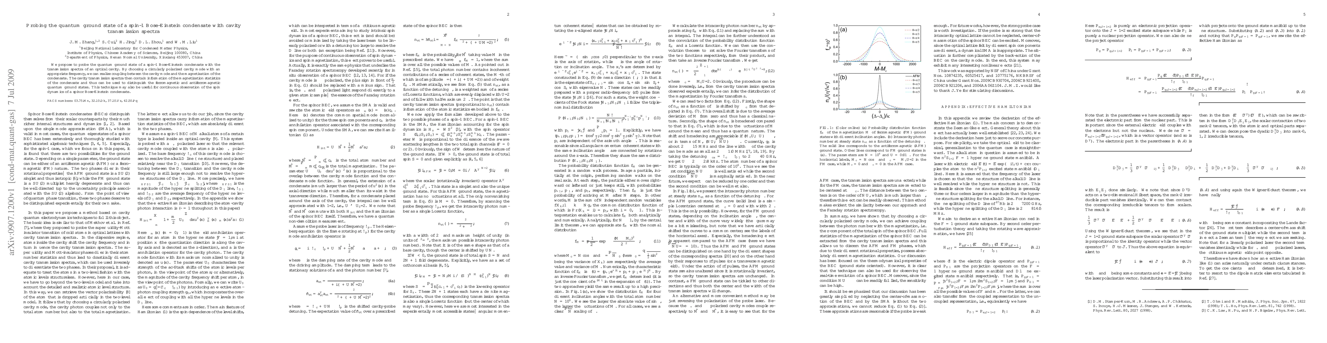 This paper proposes using optical cavity transmission spectra to probe the quantum ground state of a spin-1 Bose-Einstein condensate, distinguishing between ferromagnetic and antiferromagnetic states through magnetization statistics. The method also offers potential for continuous observation of spin dynamics in spinor Bose-Einstein condensates.