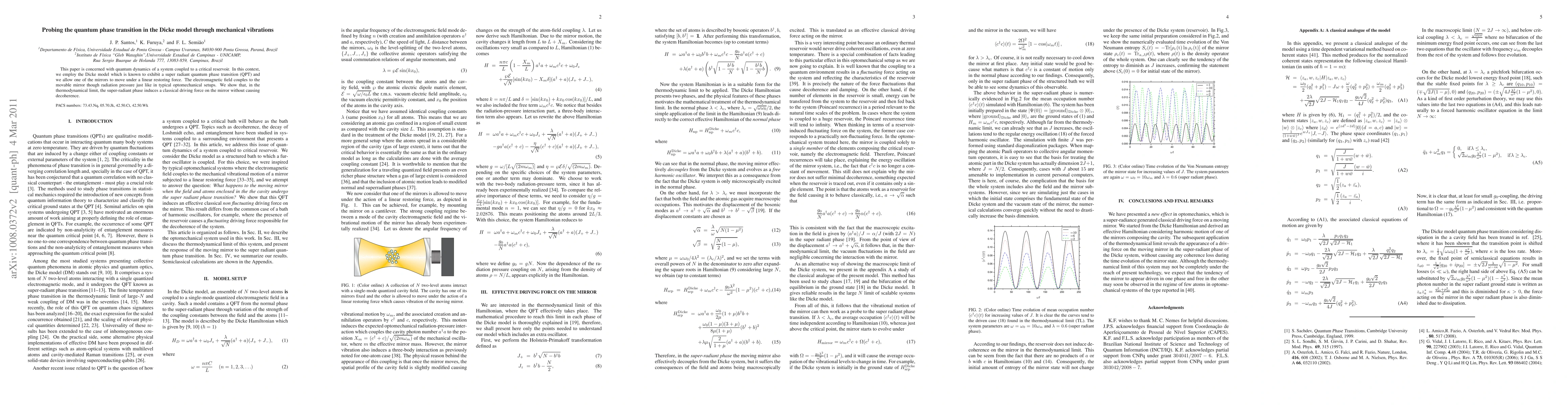 This paper is concerned with quantum dynamics of a system coupled to a critical reservoir. In this context, we employ the Dicke model which is known to exhibit a super radiant quantum phase transition (QPT) and we allow one of the mirrors to move under a linear restoring force. The electromagnetic field couples to the movable mirror though radiation pressure just like in typical optomechanical setups. We show that, in the thermodynamical limit, the super-radiant phase induces a classical driving force on the mirror without causing decoherence.