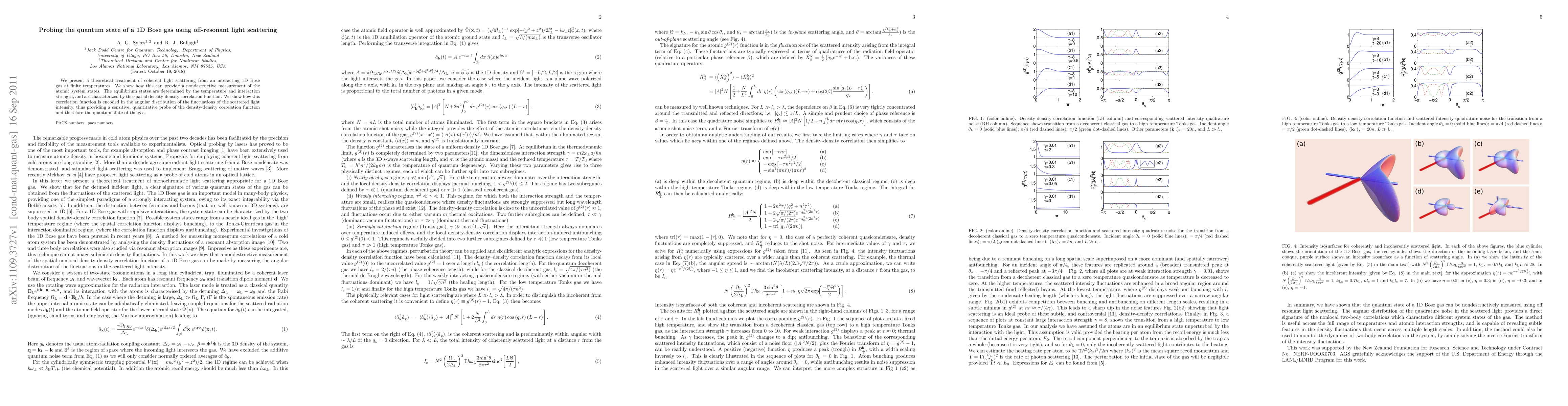 This paper proposes a method to nondestructively measure the quantum state of a 1D Bose gas using off-resonant light scattering, detecting subtle changes in scattered light intensity that correlate with the gas's density-density correlation function.