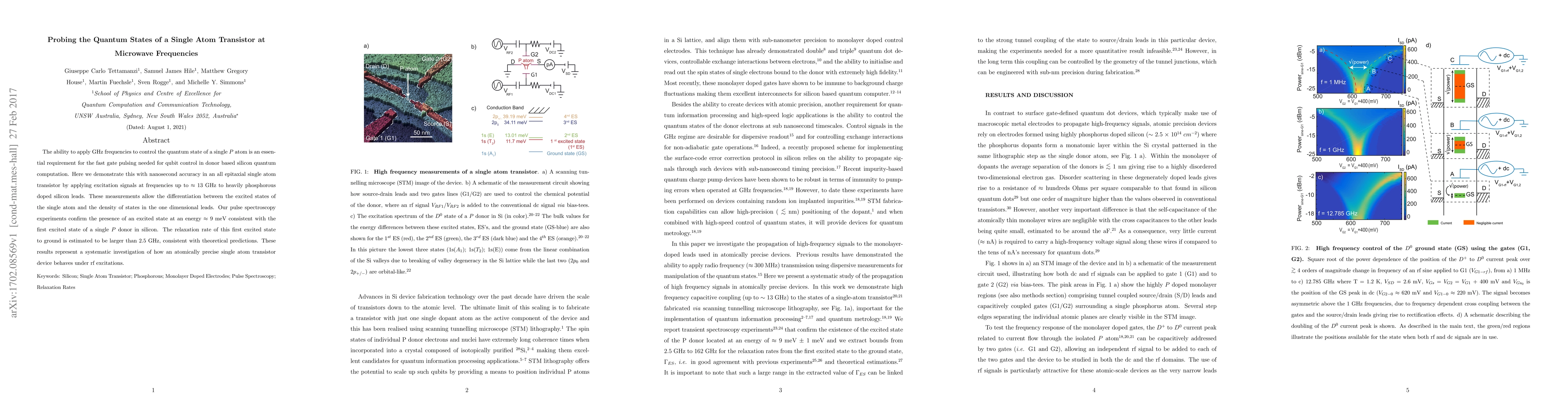 This paper investigates the quantum states of a single phosphorus atom in an epitaxial silicon transistor using GHz frequency microwave pulses. The study confirms the presence of an excited state at approximately 9 meV, with a relaxation rate exceeding 2.5 GHz, supporting the potential for fast gate pulsing in silicon-based quantum computation.