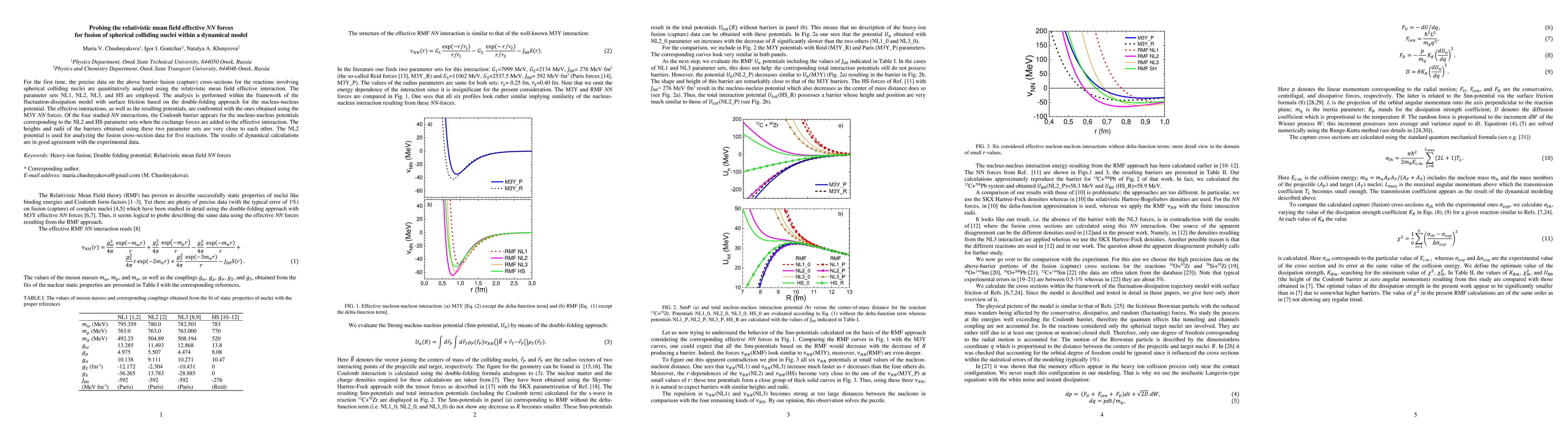 For the first time, the precise data on the above barrier fusion (capture) cross-sections for the reactions involving spherical colliding nuclei are quantitatively analyzed using the relativistic mean-field effective interaction. The parameter sets NL1, NL2, NL3, and HS are employed. The analysis is performed within the framework of the fluctuation-dissipation model with surface friction based on the double-folding approach for the nucleus-nucleus potential. The effective interactions, as well as the resulting potentials, are confronted with the ones obtained using the M3Y NN forces. Of the four studied NN interactions, the Coulomb barrier appears for the nucleus-nucleus potentials corresponding to the NL2 and HS parameter sets when the exchange forces are added to the effective interaction. The heights and radii of the barriers obtained using these two parameter sets are very close to each other. The NL2 potential is used for analyzing the fusion cross-section data for five reactions. The results of dynamical calculations are in good agreement with the experimental data.
