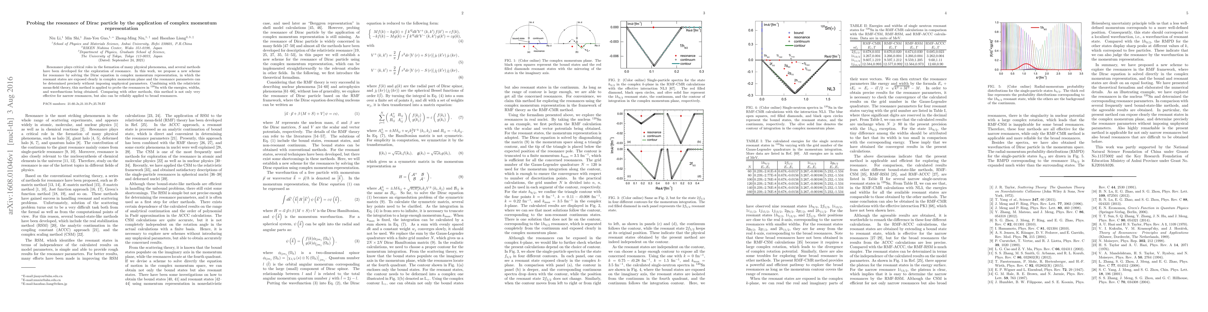 This paper proposes a novel method for exploring resonance in Dirac particles using complex momentum representation, revealing resonant states clearly and determining parameters precisely without unphysical constraints. The method, combined with relativistic mean-field theory, is effectively applied to probe resonances in $^{120}$Sn, showing success for both narrow and broad resonances.