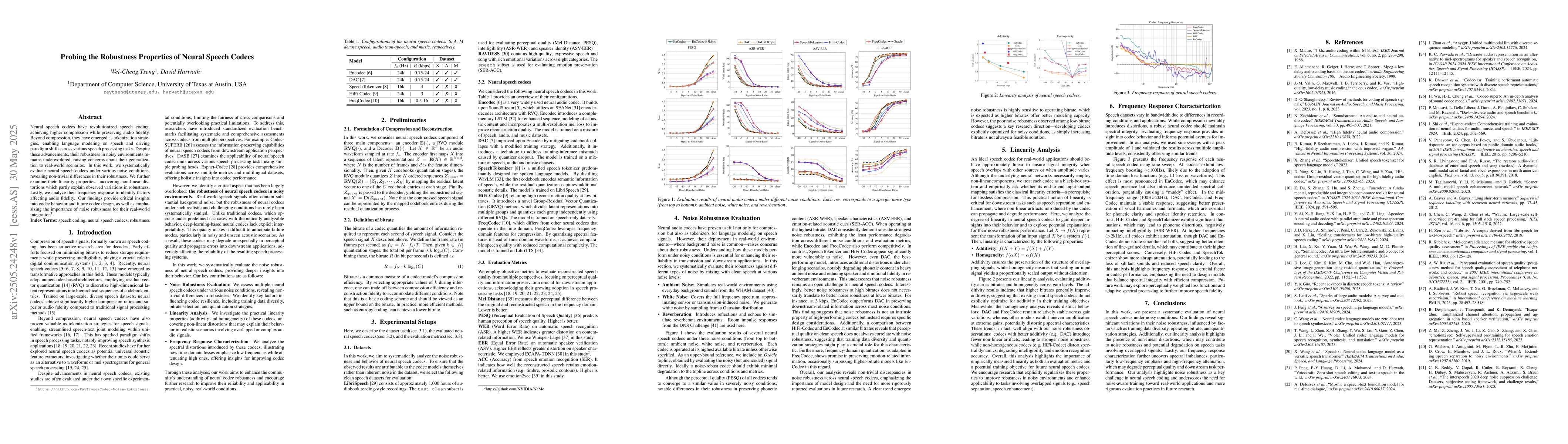 Researchers evaluated neural speech codecs in noisy environments, discovering non-linear distortions that affect robustness, and identified factors affecting audio fidelity.