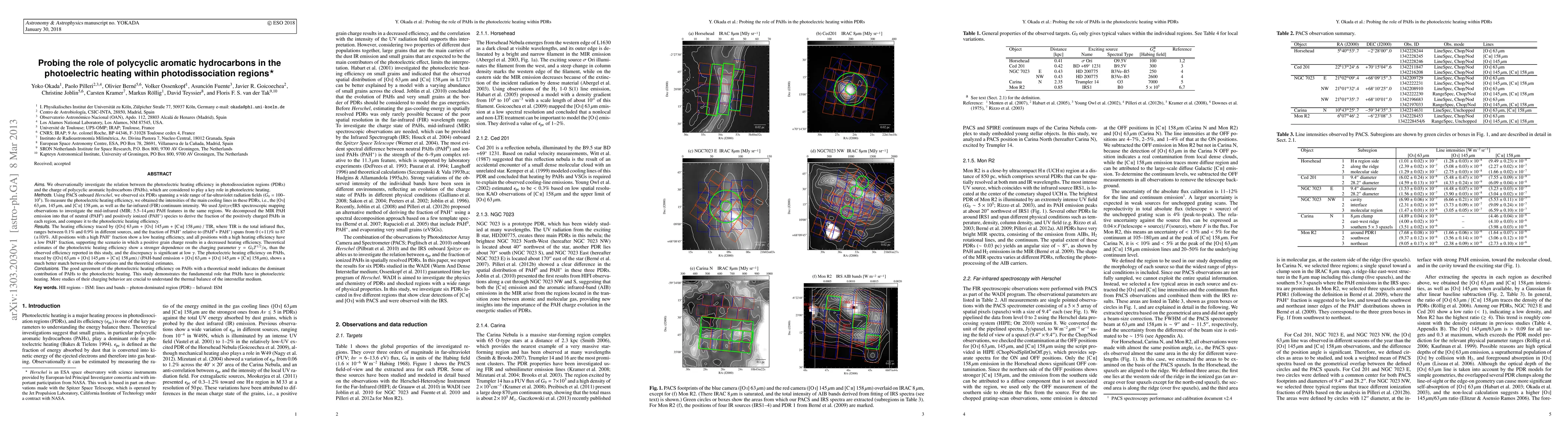 This study investigates the relationship between photoelectric heating efficiency in photodissociation regions (PDRs) and the charge state of polycyclic aromatic hydrocarbons (PAHs), using observations from Herschel and Spitzer. The findings suggest that a higher fraction of positively charged PAHs correlates with lower heating efficiency, indicating that PAHs play a dominant role in photoelectric heating.