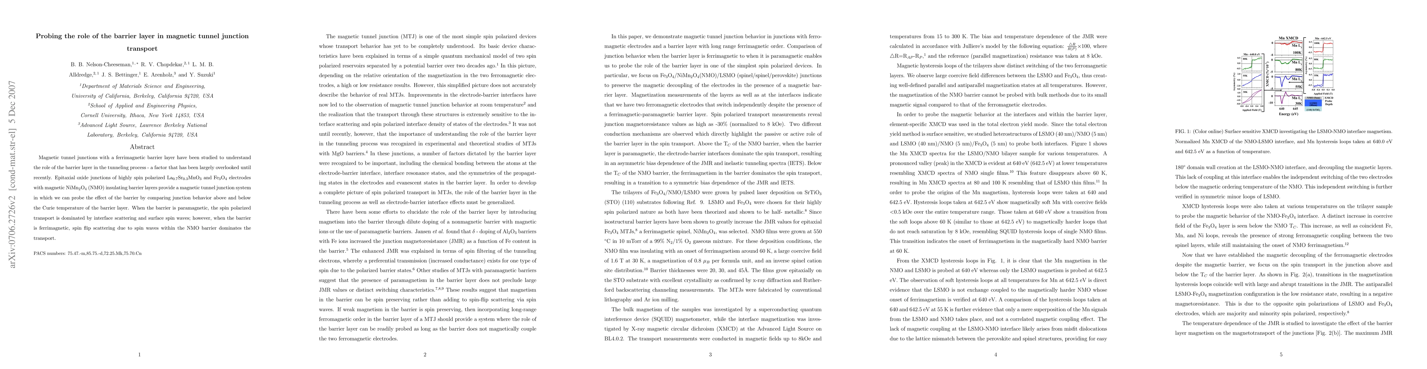 This study investigates the impact of the barrier layer in magnetic tunnel junctions, focusing on the transport behavior of epitaxial oxide junctions with La0.7Sr0.3MnO3 and Fe3O4 electrodes and a NiMn2O4 insulating barrier. It reveals that spin polarized transport is dominated by interface scattering and surface spin waves when the barrier is paramagnetic, while spin flip scattering due to spin waves within the ferrimagnetic barrier layer dominates when the barrier is ferrimagnetic.