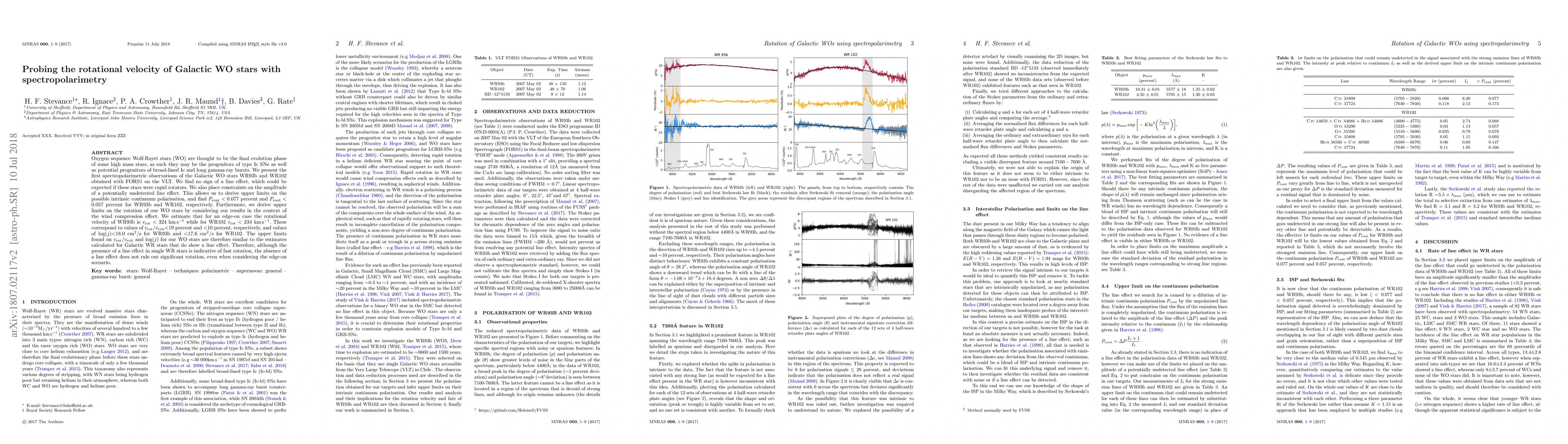 Researchers used spectropolarimetry to measure the rotational velocity of two Galactic Wolf-Rayet stars, finding upper limits of 324 km/s and 234 km/s for WR93b and WR102, respectively, suggesting they may not be rapid rotators as previously thought.