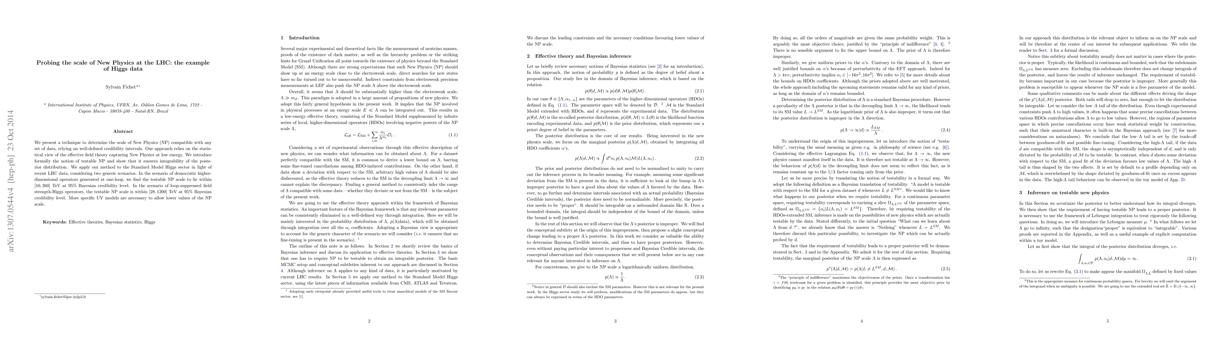 We present a technique to determine the scale of New Physics (NP) compatible with any set of data, relying on well-defined credibility intervals. Our approach relies on the statistical view of the effective field theory capturing New Physics at low energy. We introduce formally the notion of testable NP and show that it ensures integrability of the posterior distribution. We apply our method to the Standard Model Higgs sector in light of recent LHC data, considering two generic scenarios. In the scenario of democratic higher dimensional operators generated at one-loop, we find the testable NP scale to lie within $[10,260]$ TeV at $95\%$ Bayesian credibility level. In the scenario of loop-suppressed field strength-Higgs operators, the testable NP scale is within $[28,1200]$ TeV at $95\%$ Bayesian credibility level. More specific UV models are necessary to allow lower values of the NP scale.