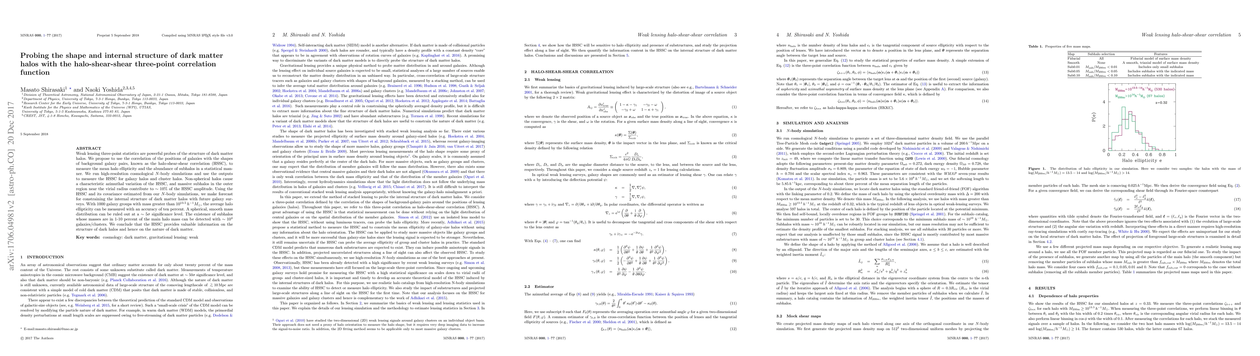 This paper proposes using the halo-shear-shear correlation function to probe the shape and internal structure of dark matter halos. Simulations show that this method can measure mean halo ellipticity and detect subhalos, providing insights into the nature of dark matter.
