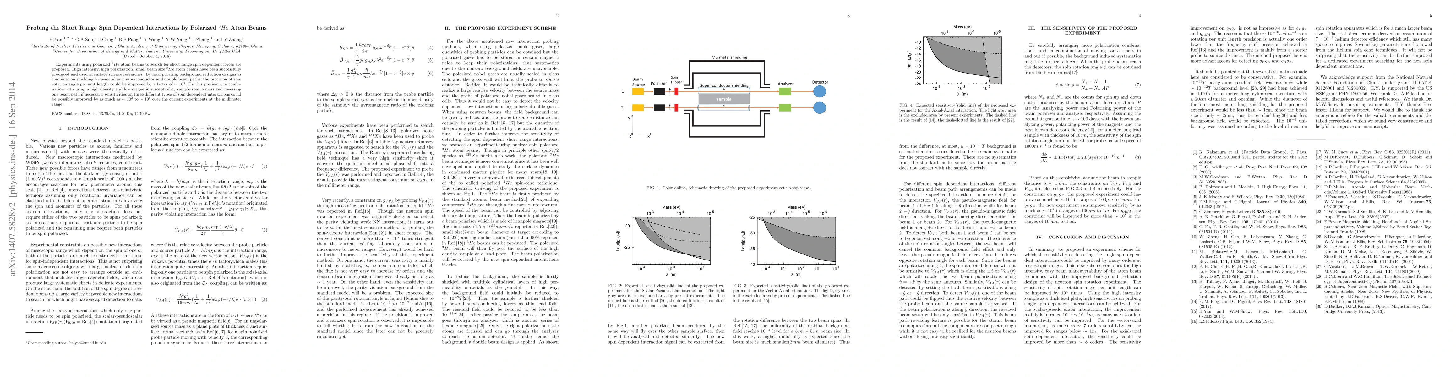 This research proposes experiments using polarized $^{3}He$ atom beams to detect short range spin dependent interactions, achieving high precision through advanced shielding and beam path techniques. The proposed setup aims to improve the sensitivity for detecting these interactions by up to eight orders of magnitude compared to current millimeter-range experiments.