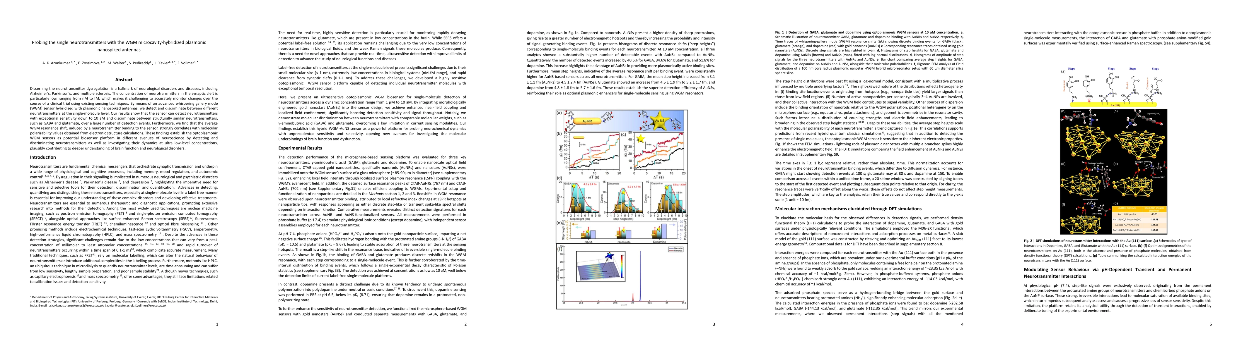 Discerning the neurotransmitter dysregulation is a hallmark of neurological disorders and diseases, including Alzheimer's, Parkinson's, and multiple sclerosis. The concentration of neurotransmitters in the synaptic cleft is particularly low, ranging from nM to fM, which makes it challenging to accurately monitor changes over the course of a clinical trial using existing sensing techniques. By means of an advanced whispering gallery mode (WGM) sensor hybridized with plasmonic nanospiked antennas, we detect and discriminate between different neurotransmitters at the single-molecule level. Our results show that the sensor can detect neurotransmitters with exceptional sensitivity down to 10 aM and discriminate between structurally similar neurotransmitters, such as GABA and glutamate, over a large number of detection events. Furthermore, we find that the average WGM resonance shift, induced by a neurotransmitter binding to the sensor, strongly correlates with molecular polarizability values obtained from electronic structure calculations. These findings establish the optoplasmonic WGM sensors as potential biosensor platform in different avenues of neuroscience by detecting and discriminating neurotransmitters as well as investigating their dynamics at ultra low-level concentrations, plausibly contributing to deeper understanding of brain function and neurological disorders.
