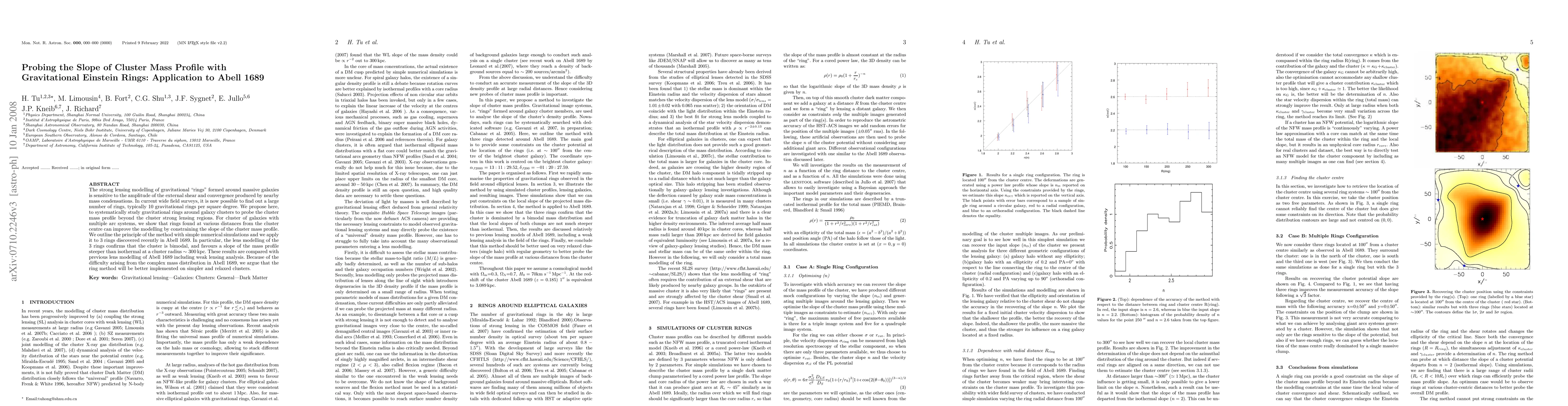 This paper proposes using gravitational Einstein rings to probe the mass profile slope of galaxy clusters beyond strong lensing regions, demonstrating this method on Abell 1689, which suggests a steeper mass profile slope than isothermal at a radius of ~300 kpc. The method is argued to be more effective for simpler and relaxed clusters.