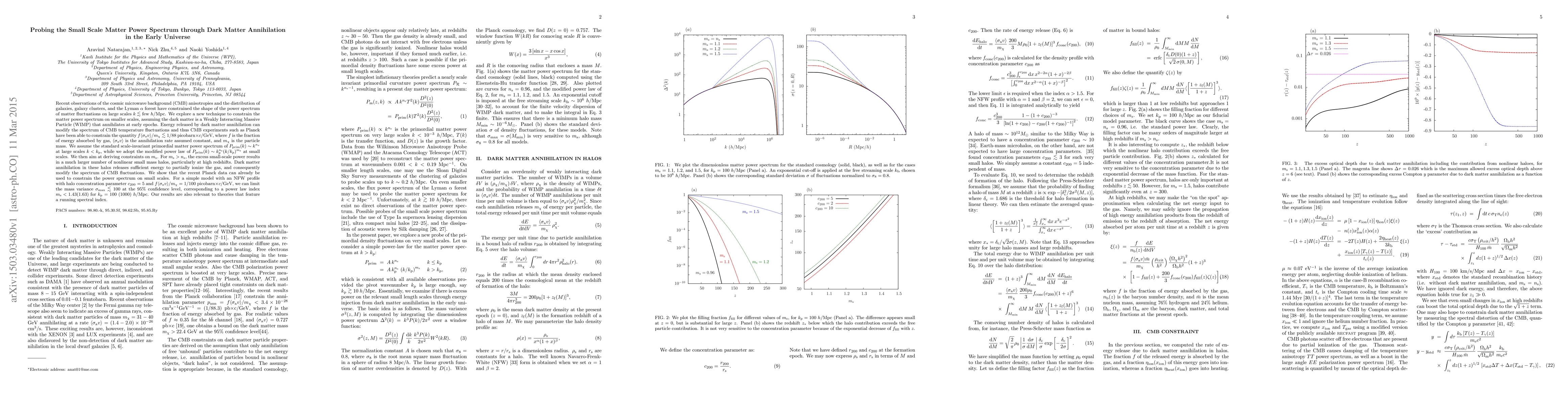 This paper explores a new method to constrain the small-scale matter power spectrum using dark matter annihilation in the early universe. It leverages Planck CMB data to limit the mass variance and the power law index, suggesting that the recent observations can already provide constraints on small-scale power spectrum modifications.