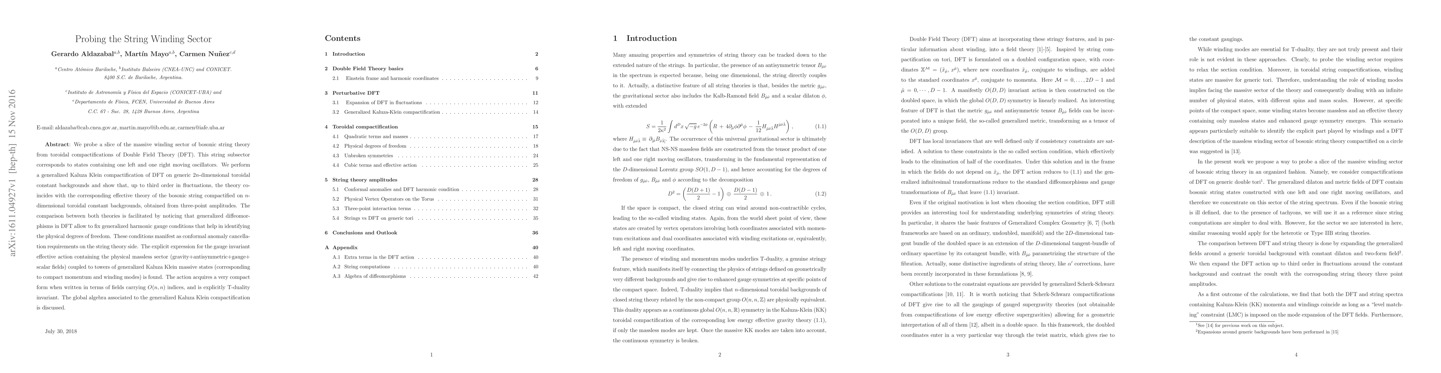 We probe a slice of the massive winding sector of bosonic string theory from toroidal compactifications of Double Field Theory (DFT). This string subsector corresponds to states containing one left and one right moving oscillators. We perform a generalized Kaluza Klein compactification of DFT on generic $2n$-dimensional toroidal constant backgrounds and show that, up to third order in fluctuations, the theory coincides with the corresponding effective theory of the bosonic string compactified on $n$-dimensional toroidal constant backgrounds, obtained from three-point amplitudes. The comparison between both theories is facilitated by noticing that generalized diffeomorphisms in DFT allow to fix generalized harmonic gauge conditions that help in identifying the physical degrees of freedom. These conditions manifest as conformal anomaly cancellation requirements on the string theory side. The explicit expression for the gauge invariant effective action containing the physical massless sector (gravity+antisymmetric+gauge+ scalar fields) coupled to towers of generalized Kaluza Klein massive states (corresponding to compact momentum and winding modes) is found. The action acquires a very compact form when written in terms of fields carrying $O(n,n)$ indices, and is explicitly T-duality invariant. The global algebra associated to the generalized Kaluza Klein compactification is discussed.