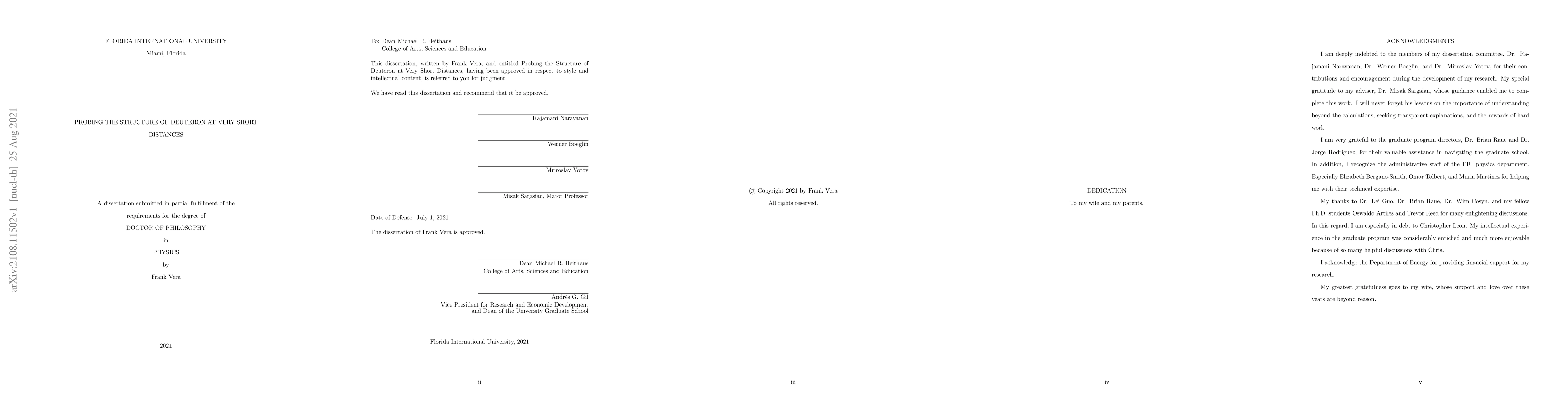We study the electrodisintegration of deuteron at quasi-elastic kinematics and high transferred momentum as a probe for the short distance structure in nuclei. In this reaction, an electron hits a nucleus of deuterium, which breaks up into a proton-neutron pair. We focus our attention on events where fast nucleons emerge, corresponding to nuclear configurations where the bound nucleons have a high relative momentum (exceeding 700 MeV/c). The present research is relevant to physical systems where high-density nuclear matter is present. This condition covers a wide range of physics, from neutron stars to nuclei stability and the repulsive nuclear core. The present work differs from previous studies in two crucial features. One is the definition of the deuteron wave function, which include terms of a relativistic origin that can be ordered based on their relative contribution to the deuteron's internal momentum distribution. These terms, related to the off-shell properties of the nucleon-nucleon bound-state, do not occur in non-relativistic quantum mechanics. However, they become increasingly important in describing configurations with a high nucleon-nucleon relative momentum. The second difference is that we account for the off-shell nature of the bound nucleon that enters on the definition of the (half-off-shell) electromagnetic current. We avoid many of the difficulties inherent to the relativistic nature of the processes involved by adopting a theoretical framework known as Light Front dynamics. Simultaneous simplifications in the definition of the relativistic wave function for the proton-neutron bound state and the treatment of the (half-off-shell) electromagnetic current for the bound nucleon are among the essential advantages resulting from the use of the Light Front dynamics.