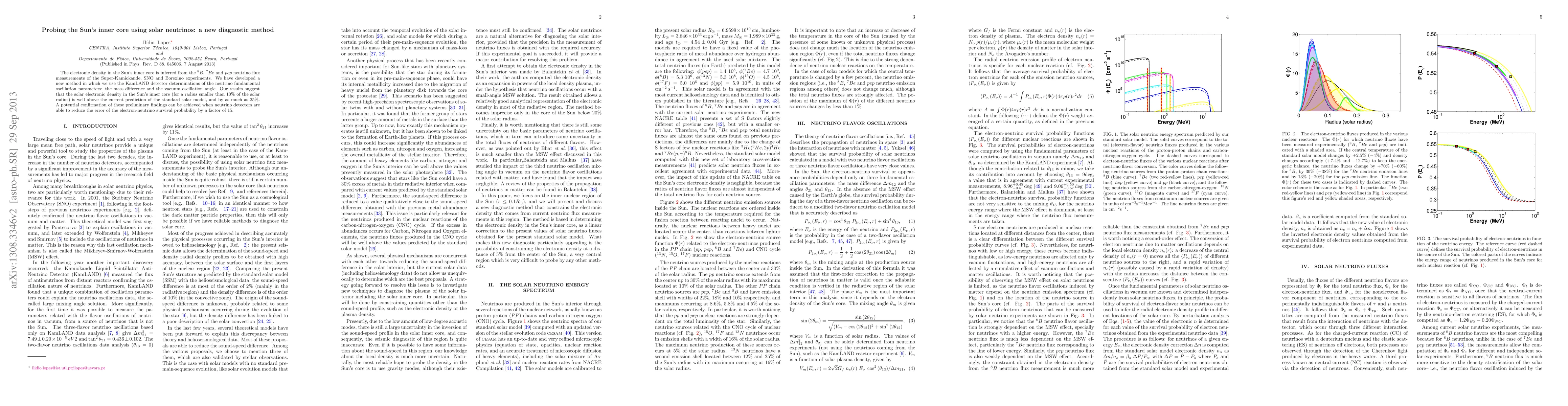 This paper proposes a new method to probe the Sun's inner core electronic density using solar neutrinos, finding it to be 25% higher than predicted by the standard solar model. The method relies on neutrino oscillation parameters measured by the KamLAND detector.