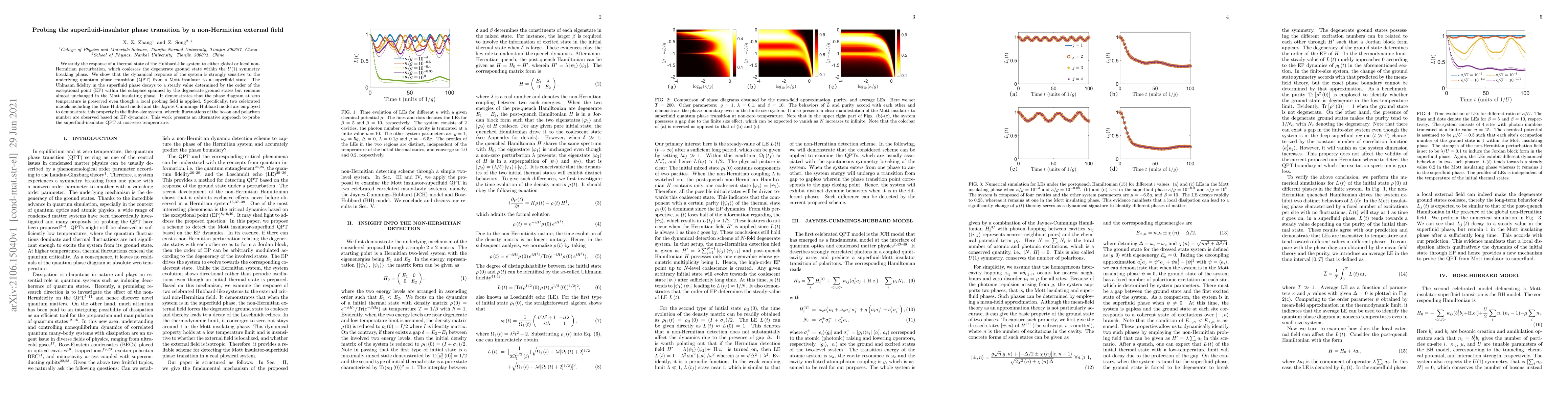 We study the response of a thermal state of the Hubbard-like system to either global or local non-Hermitian perturbation, which coalesces the degenerate ground state within the $U(1)$ symmetry breaking phase. We show that the dynamical response of the system is strongly sensitive to the underlying quantum phase transition (QPT) from a Mott insulator to a superfluid state. The Uhlmann fidelity in the superfluid phase decays to a steady value determined by the order of the exceptional point (EP) within the subspace spanned by the degenerate ground states but remains almost unchanged in the Mott insulating phase. It demonstrates that the phase diagram at zero temperature is preserved even though a local probing field is applied. Specifically, two celebrated models including the Bose-Hubbard model and the Jaynes-Cummings-Hubbard model are employed to demonstrate this property in the finite-size system, wherein fluctuations of the boson and polariton number are observed based on EP dynamics. This work presents an alternative approach to probe the superfluid-insulator QPT at non-zero temperature.