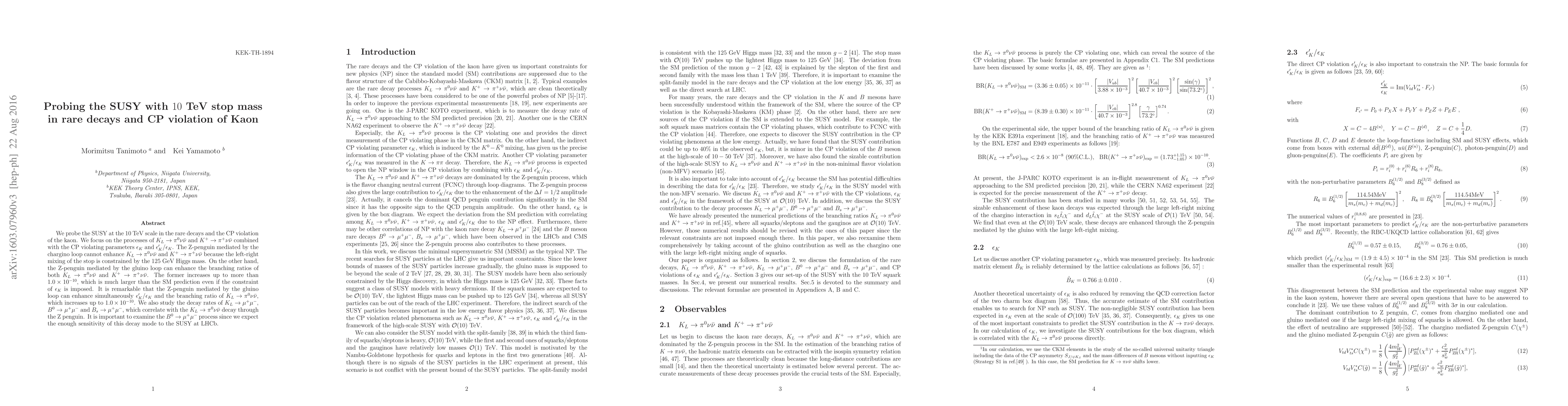Researchers investigate rare kaon decays to test supersymmetry at 10 TeV, finding a potential enhancement through the gluino loop that increases branching ratios and CP violation parameters.