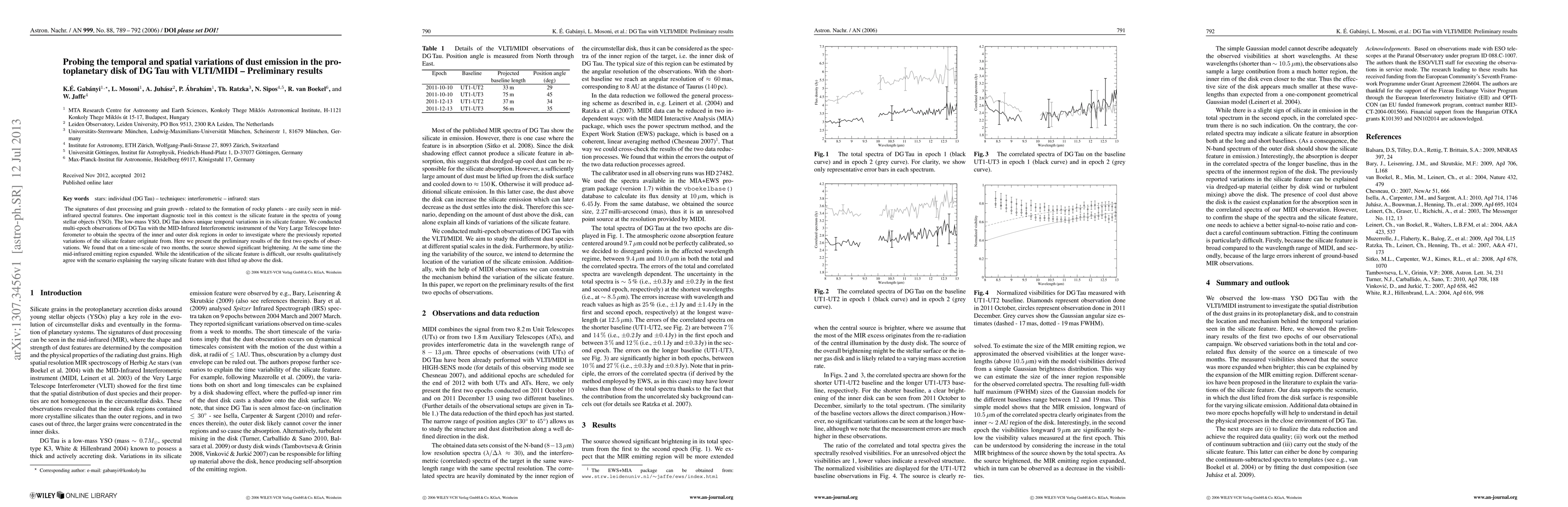 The signatures of dust processing and grain growth - related to the formation of rocky planets - are easily seen in mid-infrared spectral features. One important diagnostic tool in this context is the silicate feature in the spectra of young stellar objects (YSO). The low-mass YSO, DG Tau shows unique temporal variations in its silicate feature. We conducted multi-epoch observations of DG Tau with the MID-Infrared Interferometric instrument of the Very Large Telescope Interferometer to obtain the spectra of the inner and outer disk regions in order to investigate where the previously reported variations of the silicate feature originate from. Here we present the preliminary results of the first two epochs of observations. We found that on a time-scale of two months, the source showed significant brightening. At the same time the mid-infrared emitting region expanded. While the identification of the silicate feature is difficult, our results qualitatively agree with the scenario explaining the varying silicate feature with dust lifted up above the disk.