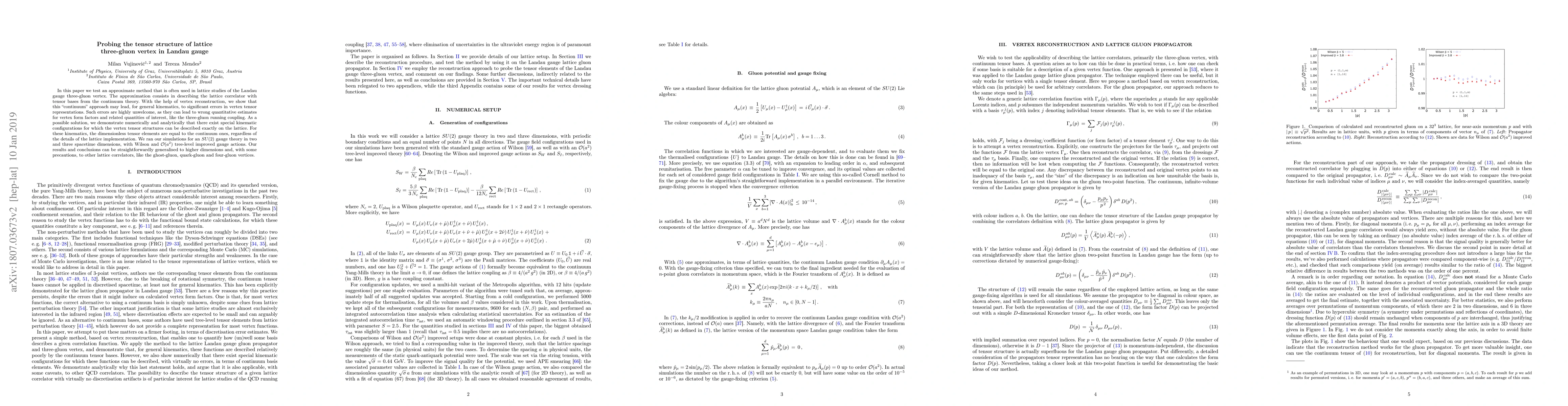 In this paper we test an approximate method that is often used in lattice studies of the Landau gauge three-gluon vertex. The approximation consists in describing the lattice correlator with tensor bases from the continuum theory. With the help of vertex reconstruction, we show that this "continuum" approach may lead, for general kinematics, to significant errors in vertex tensor representations. Such errors are highly unwelcome, as they can lead to wrong quantitative estimates for vertex form factors and related quantities of interest, like the three-gluon running coupling. As a possible solution, we demonstrate numerically and analytically that there exist special kinematic configurations for which the vertex tensor structures can be described exactly on the lattice. For these kinematics, the dimensionless tensor elements are equal to the continuum ones, regardless of the details of the lattice implementation. We ran our simulations for an $SU(2)$ gauge theory in two and three spacetime dimensions, with Wilson and $\mathcal{O}(a^2)$ tree-level improved gauge actions. Our results and conclusions can be straightforwardly generalised to higher dimensions and, with some precautions, to other lattice correlators, like the ghost-gluon, quark-gluon and four-gluon vertices.
