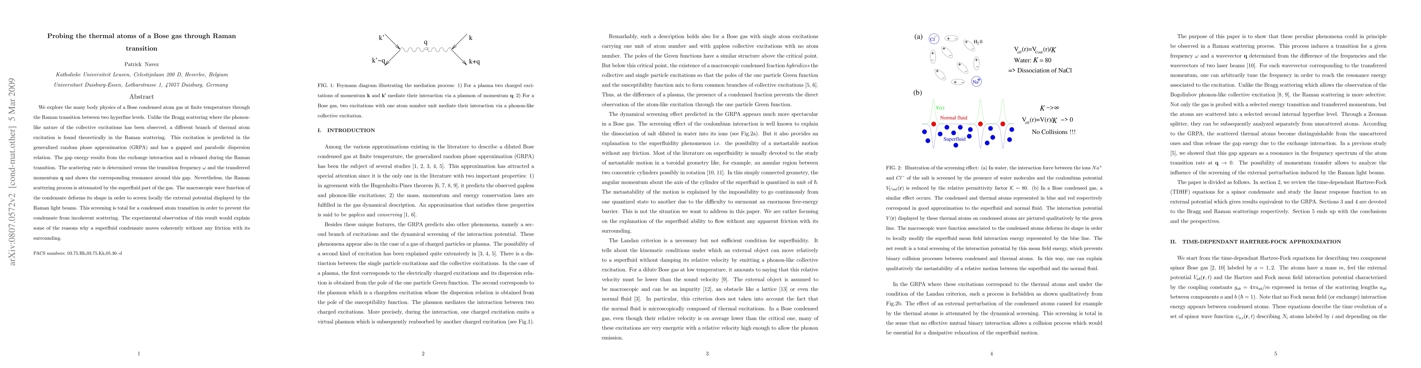 We explore the many body physics of a Bose condensed atom gas at finite temperature through the Raman transition between two hyperfine levels. Unlike the Bragg scattering where the phonon-like nature of the collective excitations has been observed, a different branch of thermal atom excitation is found theoretically in the Raman scattering. This excitation is predicted in the generalized random phase approximation (GRPA) and has a gapped and parabolic dispersion relation. The gap energy results from the exchange interaction and is released during the Raman transition. The scattering rate is determined versus the transition frequency $\omega$ and the transferred momentum $\vc{q}$ and shows the corresponding resonance around this gap. Nevertheless, the Raman scattering process is attenuated by the superfluid part of the gas. The macroscopic wave function of the condensate deforms its shape in order to screen locally the external potential displayed by the Raman light beams. This screening is total for a condensed atom transition in order to prevent the condensate from incoherent scattering. The experimental observation of this result would explain some of the reasons why a superfluid condensate moves coherently without any friction with its surrounding.