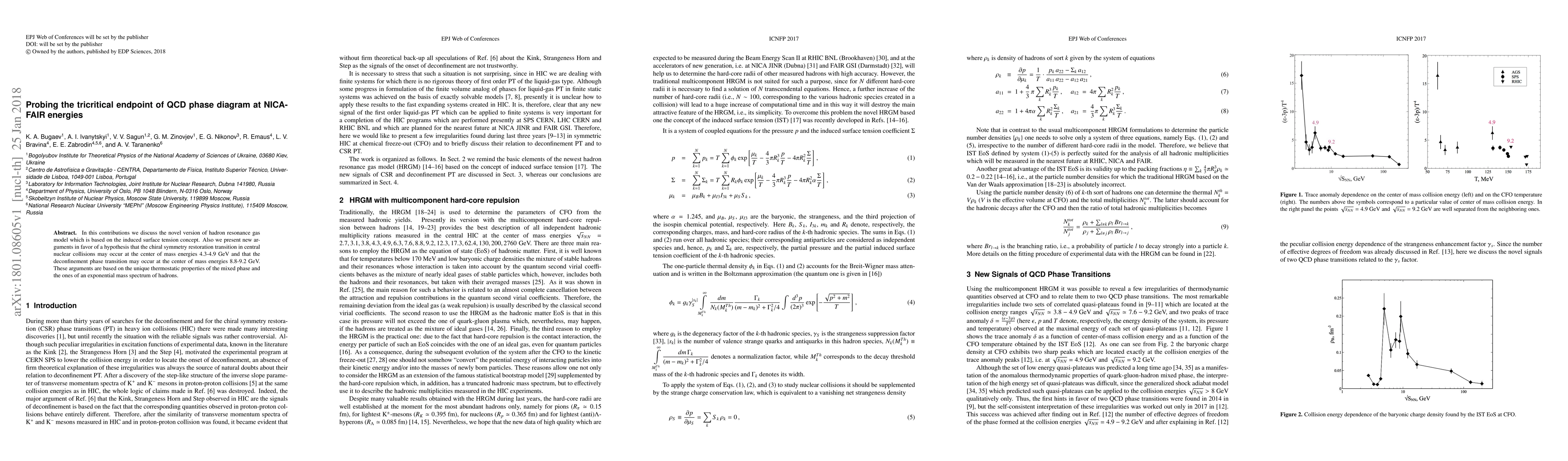 In this contributions we discuss the novel version of hadron resonance gas model which is based on the induced surface tension concept. Also we present new arguments in favor of a hypothesis that the chiral symmetry restoration transition in central nuclear collisions may occur at the center of mass energies 4.3-4.9 GeV and that the deconfinement phase transition may occur at the center of mass energies 8.8-9.2 GeV. These arguments are based on the unique thermostatic properties of the mixed phase and the ones of an exponential mass spectrum of hadrons.