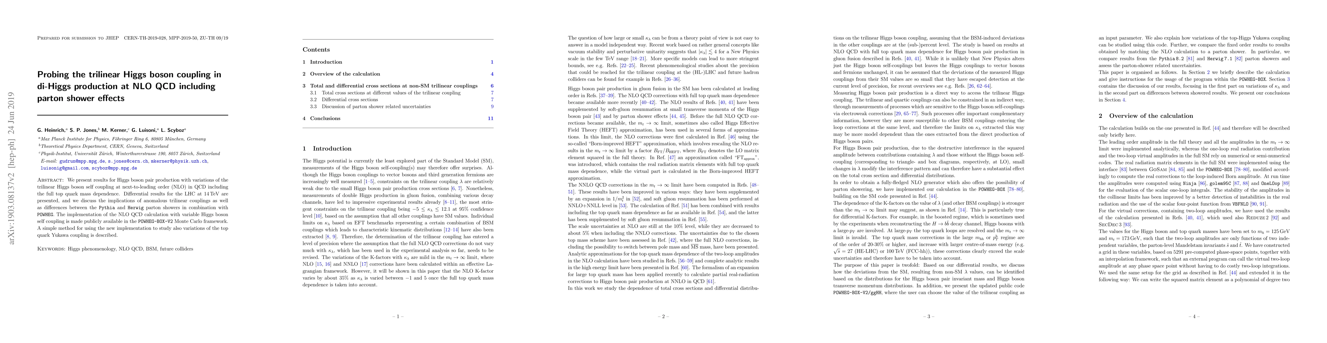 This paper investigates Higgs boson pair production at NLO QCD with variable trilinear Higgs self-coupling, presenting differential results at 14 TeV and comparing PYTHIA 8.2 and HERWIG 7.1 parton showers. The NLO QCD calculation is made available in POWHEG-BOX-V2, enabling studies of anomalous trilinear couplings and top quark Yukawa variations.