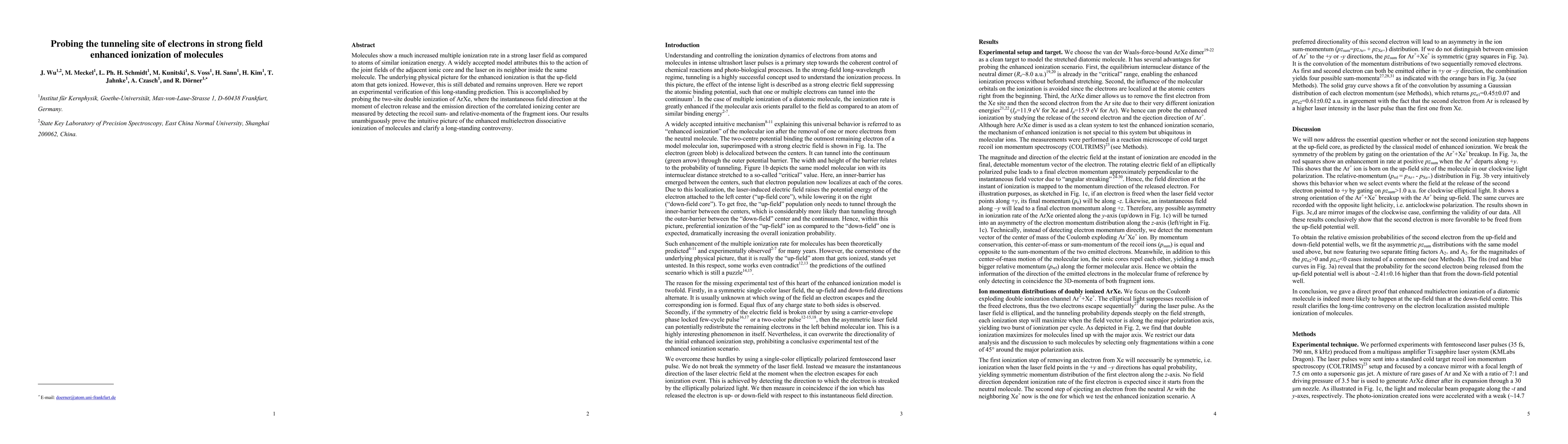 This paper experimentally verifies the enhanced multielectron ionization in molecules under strong laser fields by measuring the recoil sum- and relative-momenta of fragment ions in ArXe. The results confirm the intuitive model of ionization in the up-field atom, resolving a longstanding debate.