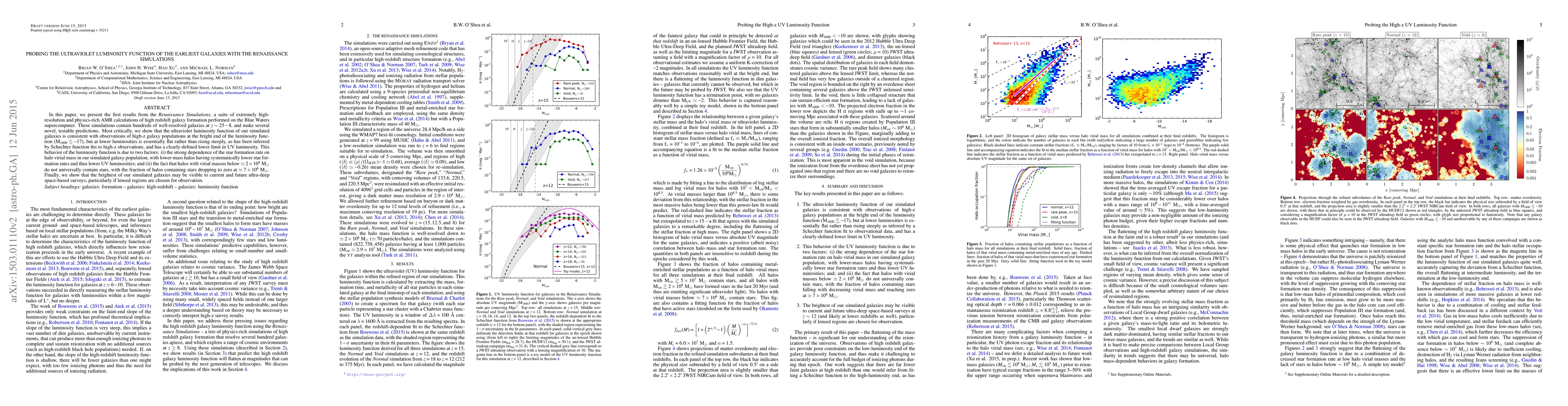 This paper uses Renaissance Simulations to model high-redshift galaxy formation, finding that the ultraviolet luminosity function of simulated galaxies matches observations for bright galaxies but is flat at lower luminosities, due to lower star formation rates in smaller halos. The simulations predict that the brightest galaxies may be detectable by current ultra-deep space surveys.