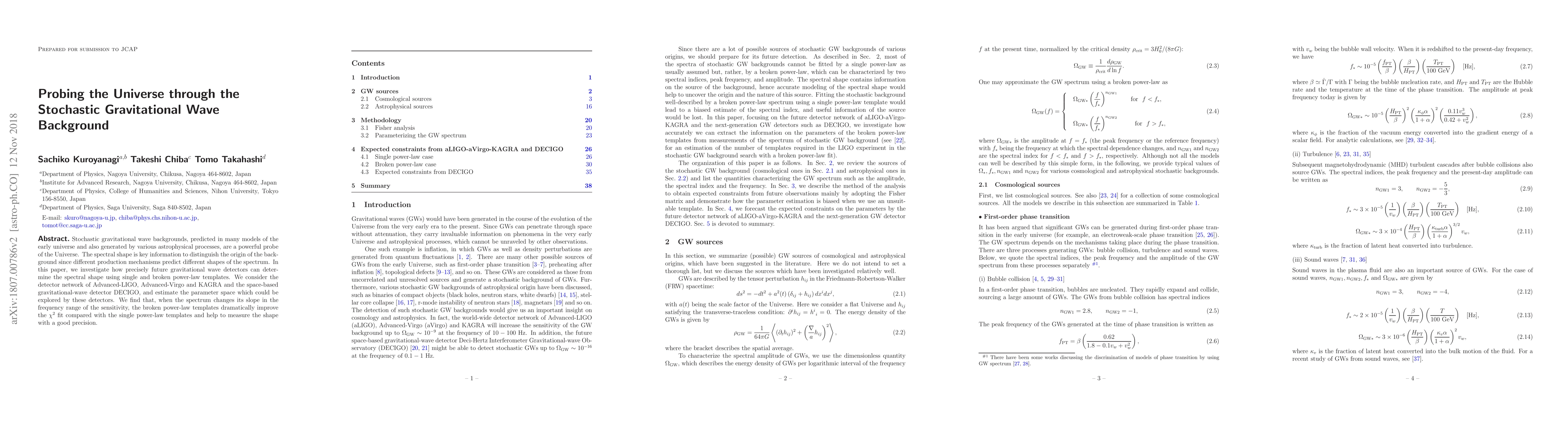 This paper examines how future gravitational wave detectors can determine the spectral shape of stochastic gravitational wave backgrounds, finding that broken power-law templates significantly improve precision in detecting spectral shape changes compared to single power-law templates. The study considers the capabilities of Advanced-LIGO, Advanced-Virgo, KAGRA, and DECIGO.