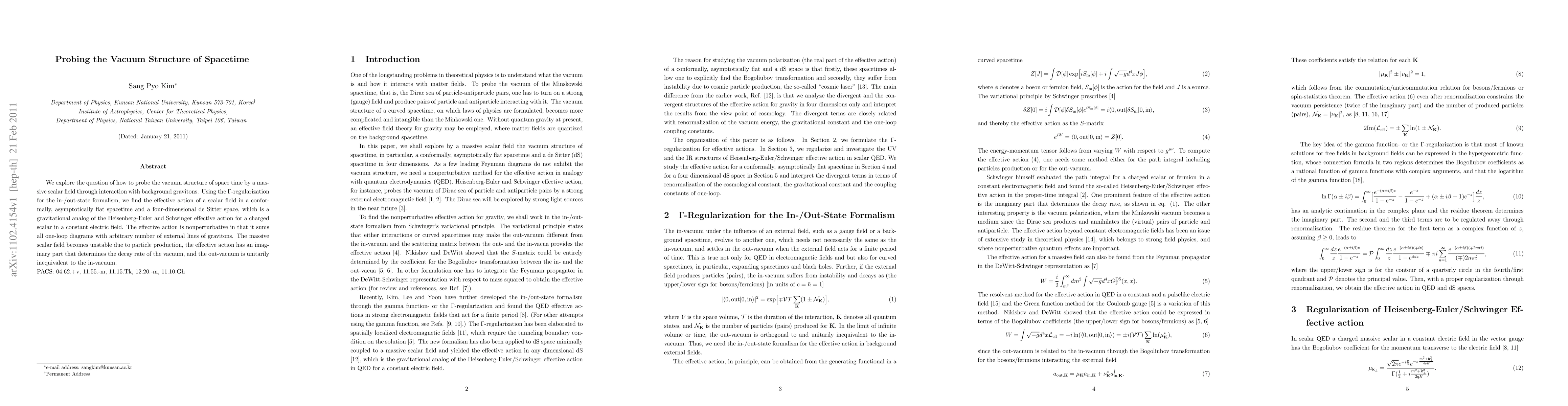 Researchers explored how to study the vacuum structure of spacetime using a massive scalar field that interacts with background gravitons, finding a nonperturbative effective action for both conformally flat spacetime and de Sitter space.
