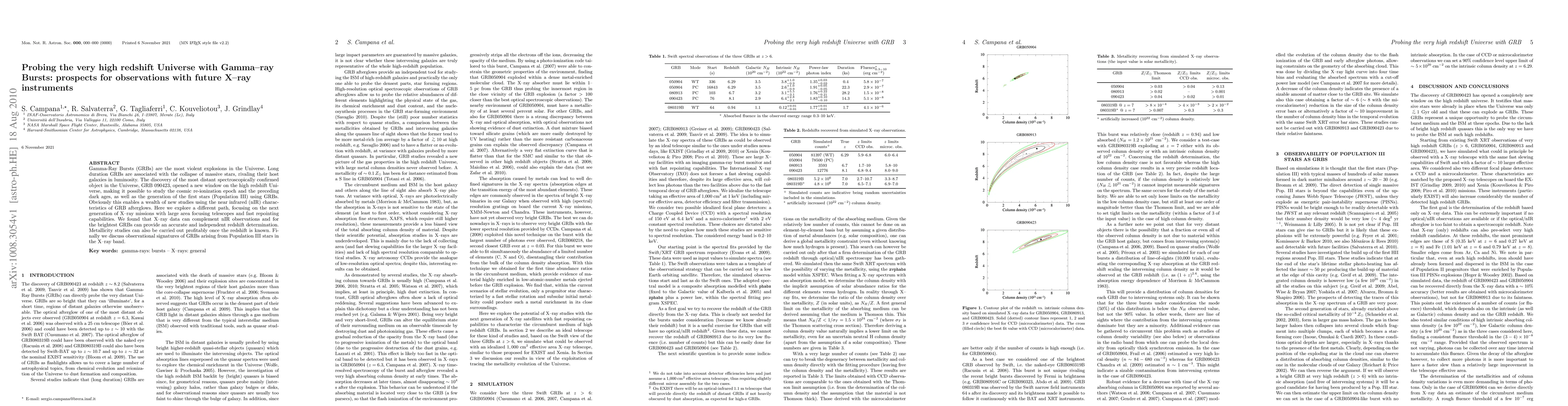 Gamma-Ray Bursts (GRBs) are the most violent explosions in the Universe. Long duration GRBs are associated with the collapse of massive stars, rivaling their host galaxies in luminosity. The discovery of the most distant spectroscopically confirmed object in the Universe, GRB090423, opened a new window on the high redshift Universe, making it possible to study the cosmic 're-ionization' epoch and the preceding dark ages, as well as the generation of the first stars (Population III) using GRBs. Obviously this enables a wealth of new studies using the near infrared (nIR) characteristics of GRB afterglows. Here we explore a different path, focusing on the next generation of X-ray missions with large area focusing telescopes and fast repointing capabilities. We found that X-ray data can complement nIR observations and for the brightest GRBs can provide an accurate and independent redshift determination. Metallicity studies can also be carried out profitably once the redshift is known. Finally we discuss observational signatures of GRBs arising from Population III stars in the X-ray band.
