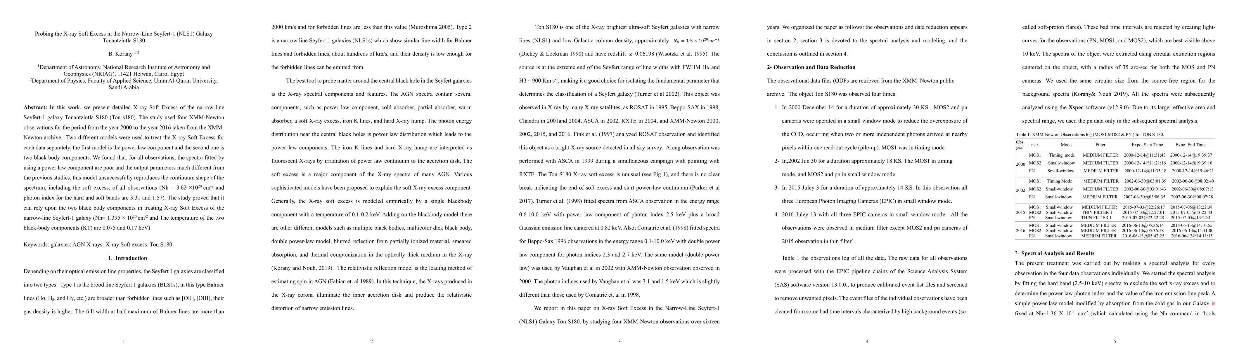 This research investigates the X-ray Soft Excess in the narrow-line Seyfert-1 galaxy Tonantzintla S180 using four XMM-Newton observations. It finds that a power law model fails to reproduce the spectrum, while a two black body model better fits the data, suggesting a more accurate approach for such analyses.