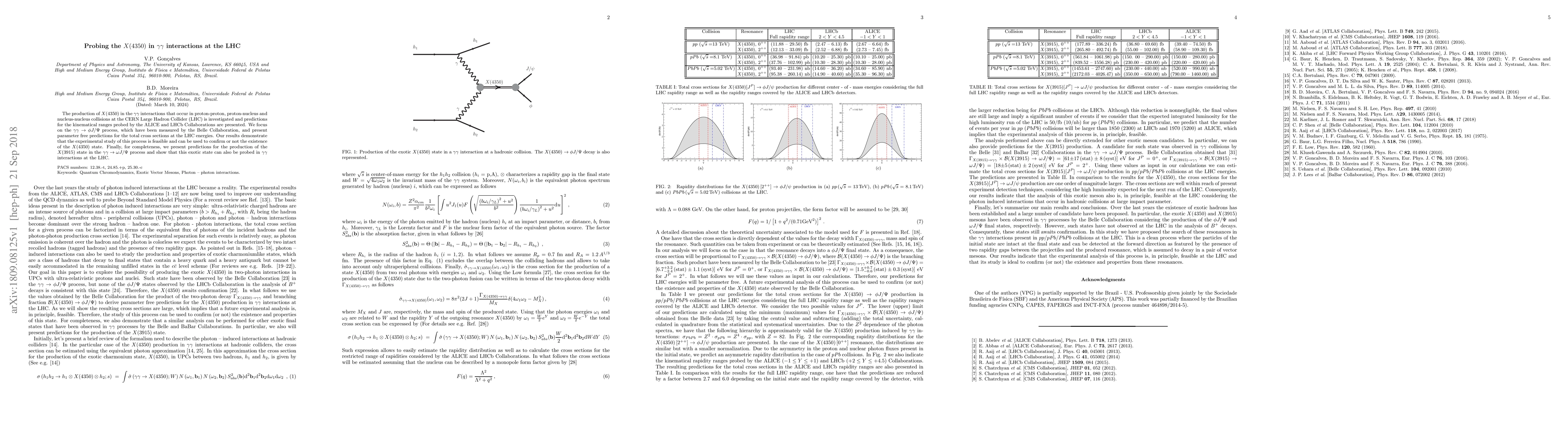 The production of $X(4350)$ in the $\gamma \gamma$ interactions that occur in proton-proton, proton-nucleus and nucleus-nucleus collisions at the CERN Large Hadron Collider (LHC) is investigated and predictions for the kinematical ranges probed by the ALICE and LHCb Collaborations are presented. We focus on the $\gamma \gamma \rightarrow \phi J/\Psi$ process, which have been measured by the Belle Collaboration, and present parameter free predictions for the total cross sections at the LHC energies. Our results demonstrate that the experimental study of this process is feasible and can be used to confirm or not the existence of the $X(4350)$ state. Finally, for completeness, we present predictions for the production of the $X(3915)$ state in the $\gamma \gamma \rightarrow \omega J/\Psi$ process and show that this exotic state can also be probed in $\gamma \gamma$ interactions at the LHC.